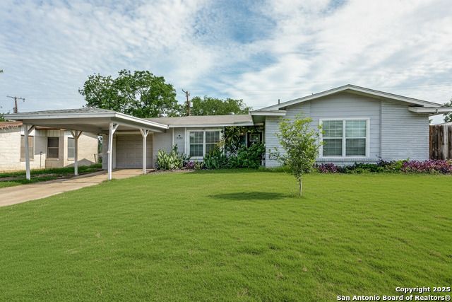 Charming single-story home in East Terrell Hills with a spacious carport, one-car garage, granite countertops, and ceramic tile throughout.