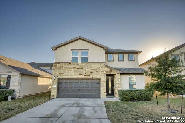 This immaculate two-story home built by DR Horton in the desirable Whisper Falls Community offers yellow topped mortar stone and stucco.