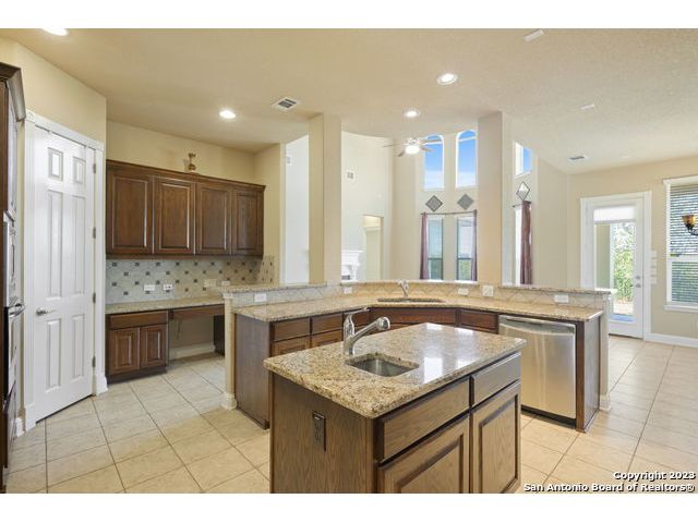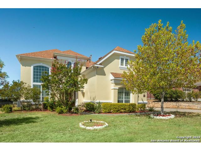 WHAT A CHARMING STUCCO HOME WITH AWESOME VIEWS****GATED COMMUNITY SO CLOSE TO THE GOLFCOURSE.......THIS HOME FEATURES 5 BEDROOMS AND 5 1/2 BATHS WOW ALL THE ROOM IS SO INVITING**********HIGH CEILINGS*****ELEGANT DINING ROOM WITH CHANDELIER**** FORMAL LIVING AREA IN FRONT OFF ENTRY HAS GREAT HIGH CEILINGS AND COULD ALSO MAKE AN EXCELLENT OFFICE*****8' DOORS AND CERAMIC TILE FLOORS TRIMMED IN MARBLE***PRIMARY BEDROOM SPLIT OFF FAMILY ROOM FEELS LIKE YOUR OWN SPA WHEN YOU ENTER THE BATHROOM! KITCHEN FEATURES GRANITE COUNTERS, GAS COOKING, BUILT IN OVEN, BUILT IN MICROWAVE, DESK OR SERVING AREA WITH WALK IN PATRY****TONS OF CABINETS******UPSTAIRS HAS STAIR CASE FOR TWO WAYS TO GET THERE*** GAME ROOM AND MEDIA ROOM FOR ALL THOSE ENTERTAINING MOMENTS*****STAIRWAY WALK WAY IS GREAT FOR A VIEW BELOW OF THE FAMILY ROOM WHICH FEATURES A FIREPLACE WITH GAS STARTER***YARD IS PERFECT SIZE TO MAINTAIN WITH SPRINKLER SYSTEM****OUTDOOR KITCHEN*****THERE IS STILL ROOM FOR A POOL*****THIS IS THE HOME YOU HAVE BEEN LOOKING FOR TO MAKE YOUR OWN***********