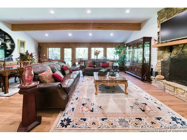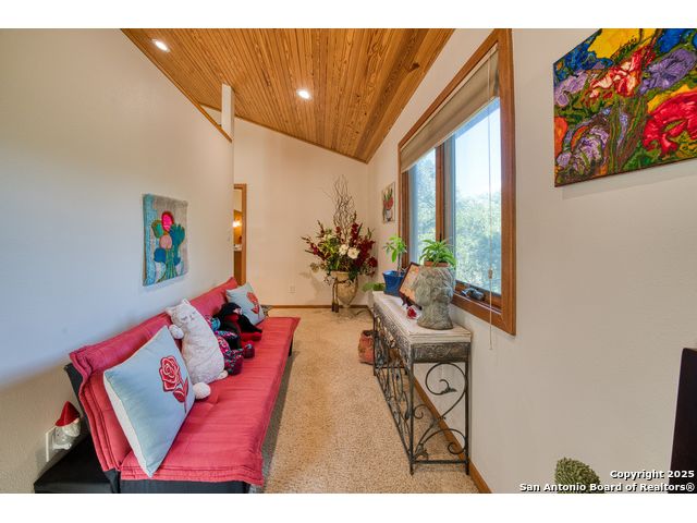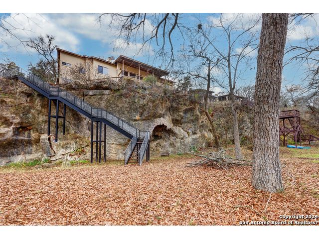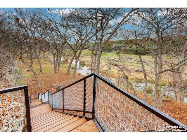 Welcome to the small private gated community of Twin Bluffs. Enter and find your little slice of heaven! Turn into 412 Field road and slowly wind through serene woods to the well built stone and stucco home atop the bluff overlooking the Blanco River below. As you enter the home you will immediately feel as though you are in a luxury treehouse. Your looking out at towering Pecans through the full wall of beautiful Andersen Wooden windows. There is a large stone fireplace on your right. Imagine cozy winter nights nestled close to the fire! Venture further to the multi level deck and further down the custom metal stairs to the Pecan and Cypress parklike river bottom below. Your looking across the river at a private 200-plus acre estate! -3 bedrooms and 2 baths -Huge master suite -Andersen wooden windows -open kitchen/living room -office/study -approx 1200 sqft/ garage/shop -113 ' river front with additional access up and down the riverfront! Located about 8 miles west of Wimberley. About 1/4 mile up river from John Knox ranch.