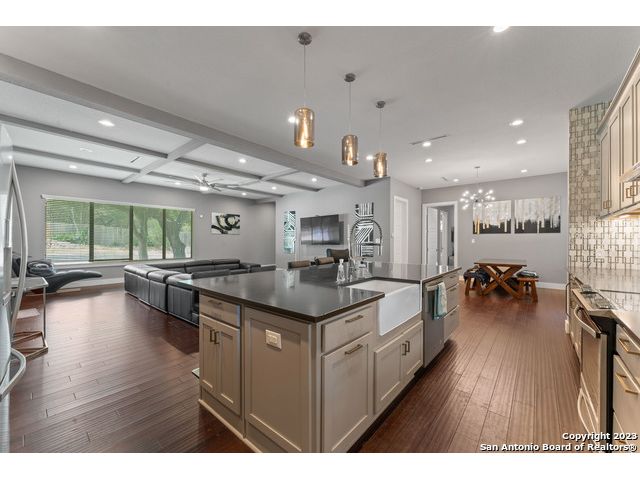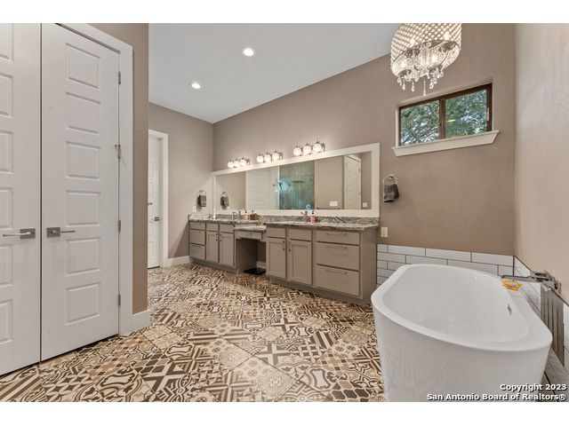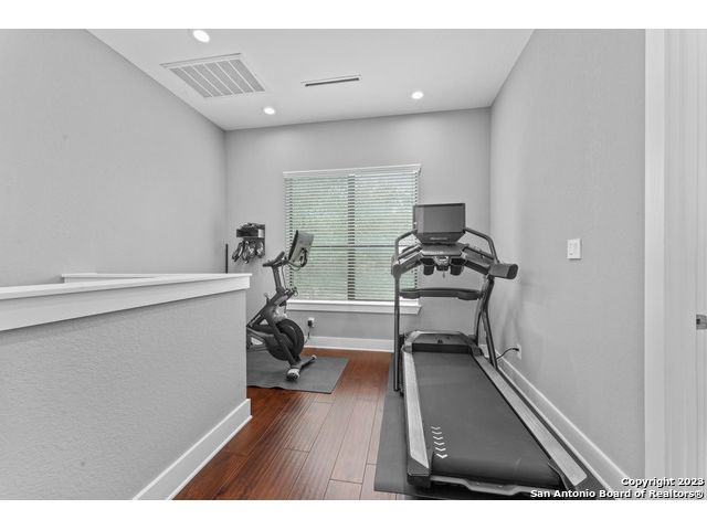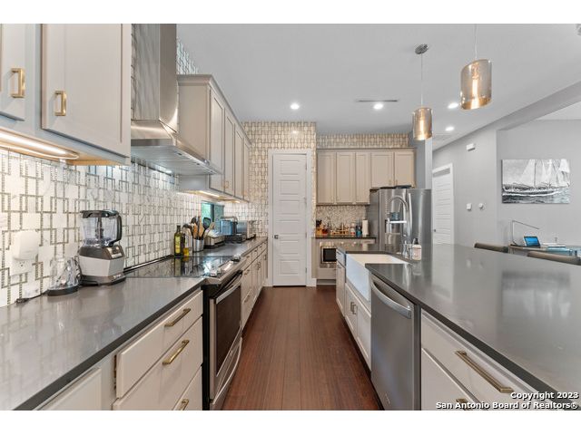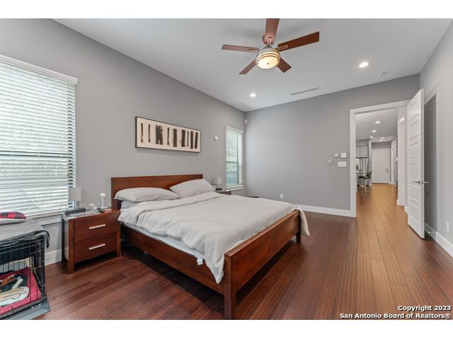 Welcome to your dream home! This stunning 3 bedroom, 3 1/2 bathroom house built in 2017 boasts an open floor plan, perfect for entertaining family and friends. The modern kitchen features an oversized island with beautiful custom cabinets, a mirrored backsplash, and a wine cooler, making it the perfect space to whip up your favorite meals. The deep farm sink and stainless steel appliances provide the perfect blend of style and functionality. Step into the master bedroom downstairs and experience a true oasis. The large custom walk-in closet is perfect for all your storage needs, while the master bathroom features a double shower, a free-standing tub, a double vanity, and custom tile work, creating a luxurious spa-like experience. Wood flooring throughout the house adds a touch of warmth and elegance, while the flex space upstairs provides additional living space and can be used as an office, playroom, or home gym. Take a step outside onto the custom patio and enjoy the beautiful new deck made with IPE (Brazilian Hardwoods), perfect for outdoor living and entertaining. Say goodbye to the hassle of dragging hoses and watering cans around the yard, and enjoy the convenience and efficiency of a full irrigation system. With this system in place, you can rest easy knowing that your landscaping investment is protected and your property is always looking its best. Experience peace of mind with the state-of-the-art security system in this home, featuring the latest Ring Pro technology. The control center and battery backup provide reliable performance, ensuring that your home is always protected. With four floodlight cameras and two doorbell cameras, you'll have complete visibility and control over who comes and goes. The keypad door locks at the front and back doors offer convenience and added security, while the multiple glass shatter sensors and window sensors provide an extra layer of protection. Whether you're at home or away, you'll be able to monitor your property with ease and stay connected with your home. You'll have the peace of mind you deserve, knowing that your home and loved ones are safe and secure." Located in a desirable neighborhood, this home is just a short drive from shopping, dining, and entertainment options all inside the 1604. Don't miss out on the opportunity to make this beautiful home yours!