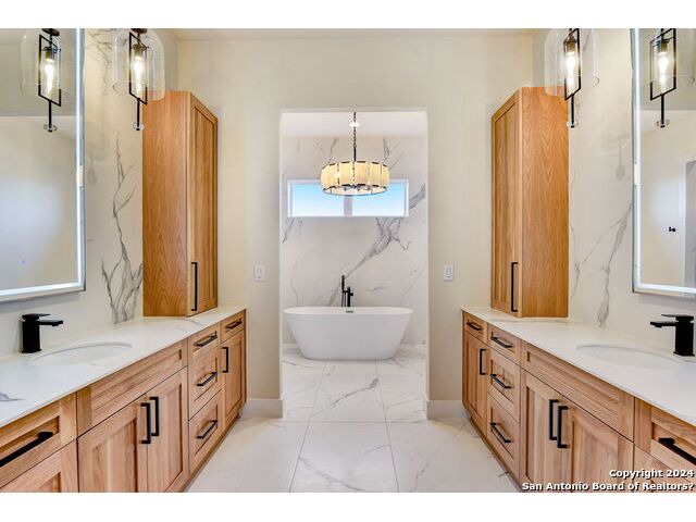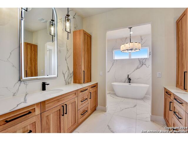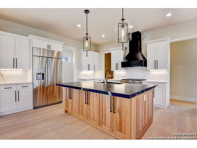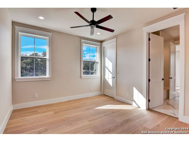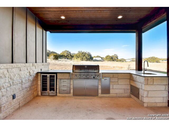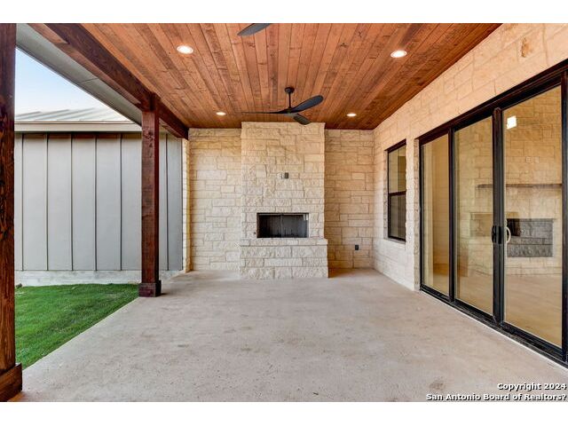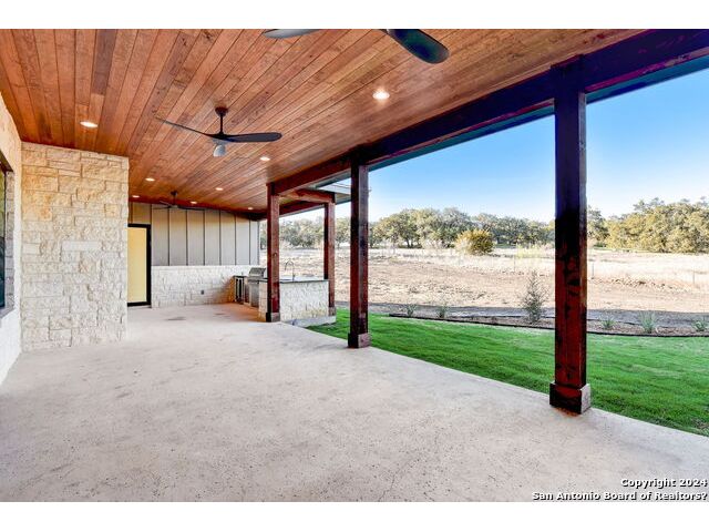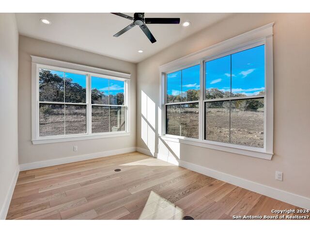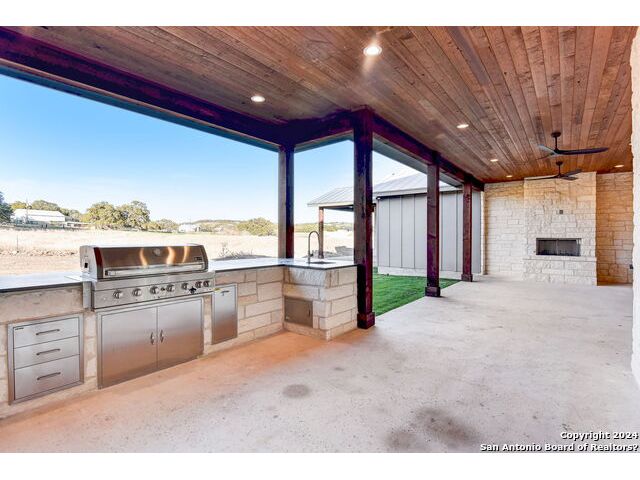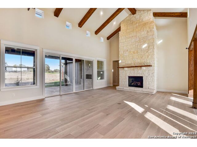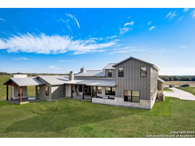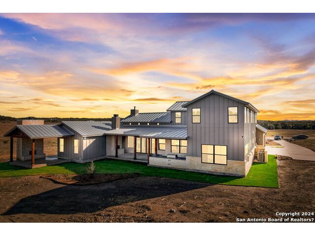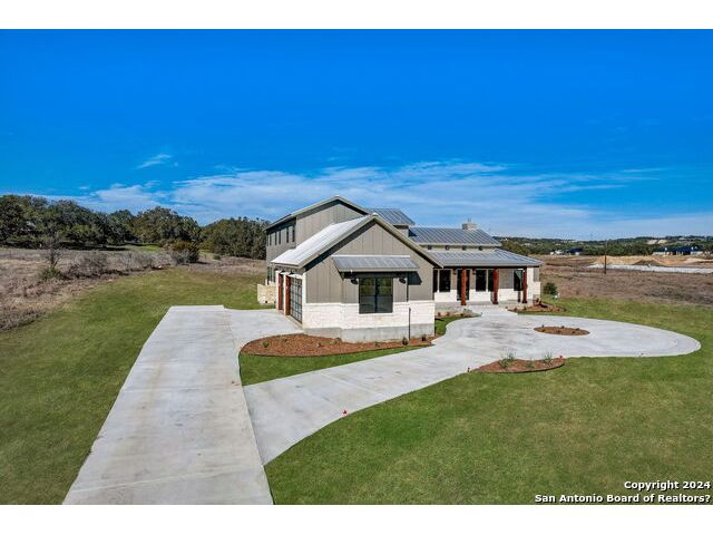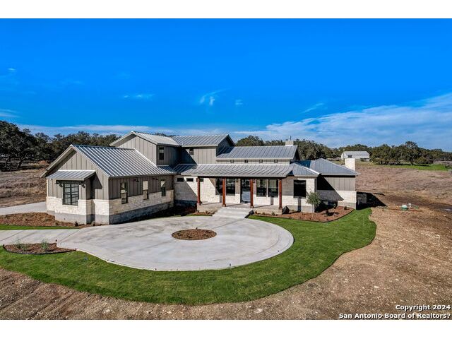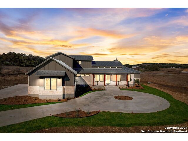 Rented now but available for sale and owner finance- please call to inquire. Absolutely magnificent modern farmhouse sitting on a private 1+ acre lot in beautiful Belle Oaks. Award-winning 2023 Parade of Homes builder and architect! Proudly designed to be Your Home that has it all: luxurious, spacious, comfortable, and beautiful with superior construction and craftsmanship. Home located in front of a private 20+ acre ranch and also surrounded by 5 acres of open space land for the ultimate in privacy and views. The grand wrought iron pivot door is flanked by copper-like natural gas lanterns with herringbone design brick floors of the front patio which continue into the entry hall that open into a magnificent great room with -the heart of a home- stone fireplace from floor to ceiling and a mantel made out of a fallen pecan tree...quality is in the details. Dream Kitchen features custom cabinetry, a full butler's pantry, additional fridge space, and a luxurious Dacor appliance package. Separate breakfast nook with natural light and easy access to patio. Generous covered back patio with a full outdoor kitchen and patio fireplace-perfect for enjoyment. The main floor master suite has its own private patio with its own wood burning fireplace, his and her custom closets, private gym, and its own washer and dryer. European white oak wood floors thru out the entire first and second floor. Large guest suite and separate office located on the main floor. Additional 3 bedrooms and 2 bathrooms, as well as a media/game room are located on 2nd floor. Large utility/mud room off the oversized 3 car garage with insulated glass and aluminum garage doors. Unsurpassed views, well-thought floor plan, generous luminous spaces thru out, top finishes and craftsmanship elevate this modern farmhouse for the ultimate hill country home.