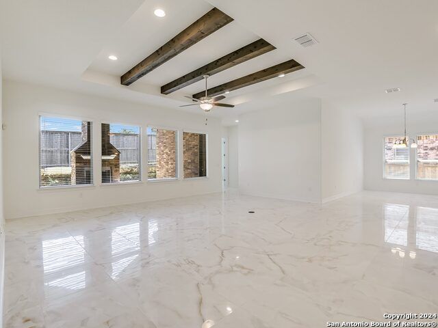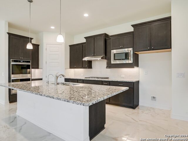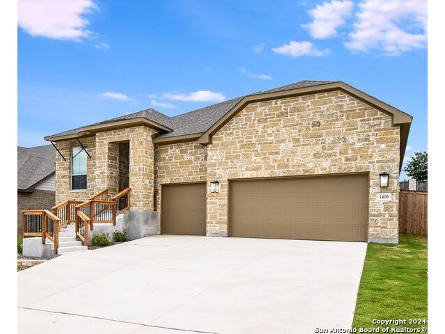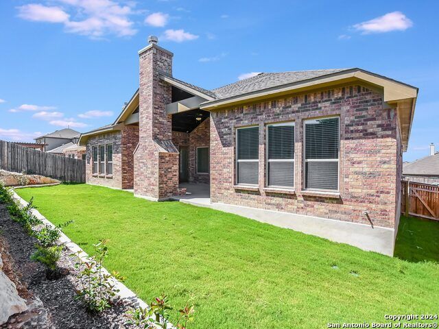 This stunning, brand-new four-bedroom, three-bathroom home in north San Antonio offers a sleek and modern living experience. The kitchen boasts built-in, top-of-the-line stainless steel appliances with double ovens, a 36" cooktop with a vent hood, great counter space, and large storage cabinets with lighting. The spacious living room is filled with natural light, providing a welcoming and open atmosphere. The master suite exudes luxury with its double vanity and separate bath and shower. complete with a covered patio that is perfect for relaxation or entertainment. The home is fitted with a 3-car garage, An outdoor fireplace creating a cozy ambiance under the covered patio, while the generously sized yard offers plenty of space for various outdoor activities. This home is a perfect blend of contemporary design, comfort, and modern amenities.