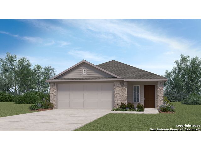 The Caroline plan is a one-story home featuring 3 bedrooms, 2 baths, and 2-car garage. The generous front patio opens to a gourmet kitchen including granite counter tops, stainless steel appliances and open concept floorplan with the kitchen opening to the dining and family rooms. The first bedroom features a semi-vaulted ceiling and an attractive ensuite bathroom. The spacious rear covered patio (per plan) is located off the family room. Additional features include sheet vinyl flooring in entry, living room, and all wet areas, and full yard landscaping and irrigation. This home includes our HOME IS CONNECTED base package. Using one central hub that talks to all the devices in your home, you can control the lights, thermostat and locks, all from your cellular device.