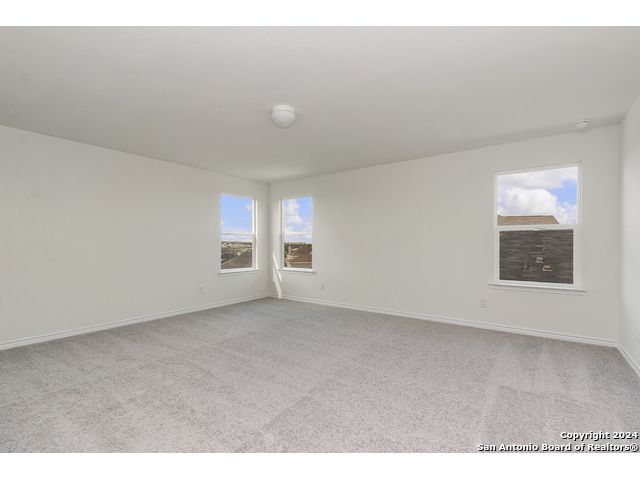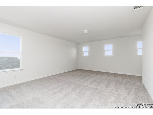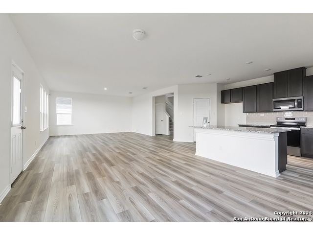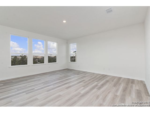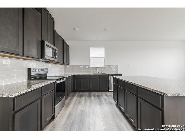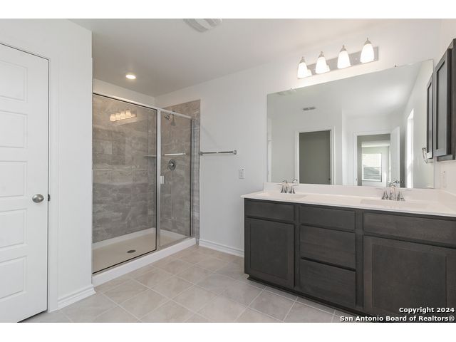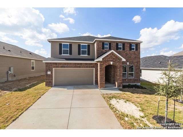 **Indulge in luxury living with this impeccable home boasting 9-ft. first-floor ceilings and a den with double doors, offering versatility for work or relaxation. The kitchen is a chef's paradise with Woodmont Dakota Shaker-style 42-in. upper cabinets, Emser CatchTM glossy tile backsplash, and an extended breakfast bar, perfect for casual dining or entertaining. Retreat to the primary bath featuring a raised vanity, upgraded cabinets, and a spacious 42-in. shower with Emser tile surround. Elegant touches include a striking Texas Star entry door and durable vinyl plank flooring throughout. Enjoy modern amenities like a wireless security system and an exterior rear door with a blind insert for added privacy. Outside, enjoy the convenience of an automatic sprinkler system, ensuring a lush fully sodded back yard.