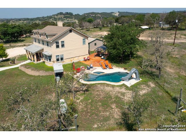 Unbeatable Opportunity! Rare and private 60-acre property with unrestricted land and breathtaking views! Perfect for outdoor enthusiasts and hunters with abundant exotic wildlife. The property features two homes: a charming 4-bedroom, 3-bath main house with a spacious bonus room, a master suite on the main floor, a cozy rock fireplace, a fenced-in rock patio, a pool, jacuzzi, and a waterslide. Plus, there's a newer 4-bedroom, 3-bath guest home with a welcoming screened front porch and a fenced backyard, ideal for pets. The property also includes a working water well and Ag Exempt pastureland, with plenty of space for horses. Conveniently located just 5 minutes from downtown Kerrville and I-10, 30 minutes from Fredericksburg, and an hour from San Antonio. A major hospital is also nearby. Situated next to the prestigious Twin Springs community with 20-acre minimum ranch sites, this is an exceptional property for a family retreat or an outstanding investment opportunity. There's no HOA, and the land is sub-dividable. Make this your perfect Texas Hill Country escape!
