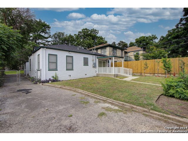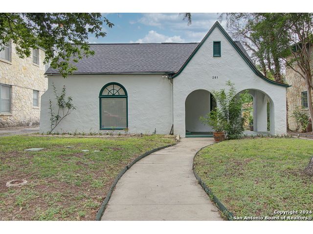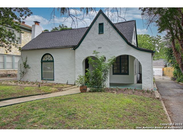 Welcome yourself to this charming storybook cottage in the historic Monte Vista neighborhood. Nestled in an area within 1.5 miles of UIW, SA Zoo, Brackenridge Park and The Witte Museum. Appreciate the coziness and layout of this unique architectural 2-bedroom beauty beginning with its outdoor design and its indoor welcoming and relaxing ambiance. This home greets you with a beautiful arched ceiling above an open living area with lots of natural light and high ceilings throughout. A kitchen with gas cooking, open cabinets, quartz countertops and an island that doubles as a breakfast bar, gives a great area good versatility. A separate dining room that can be utilized as a more formal setting for eating or entertaining. An open primary bedroom comes in over 160sq/ft with separate closets and a connecting bathroom with stand-up shower. Secondary bedroom shows in at over 120sq/ft with a single closet and also has a connecting bathroom with stand-up shower that basically closes out the interior in this family setting. The covered terrace in the backyard provides an excellent setting for enjoying an early morning or early evening sunrise/sunset and overlooks the detached office area with 1/2 bath.