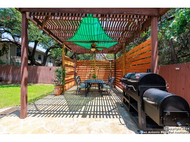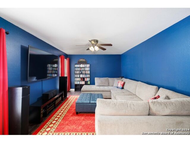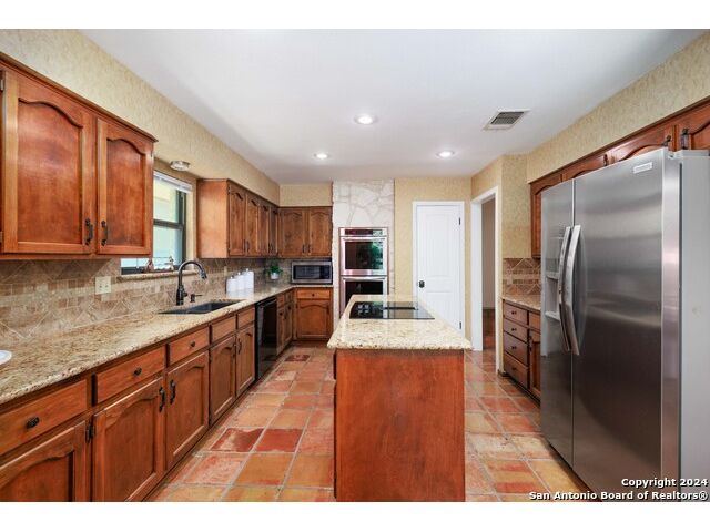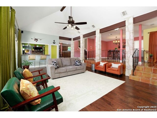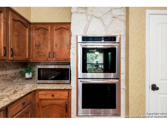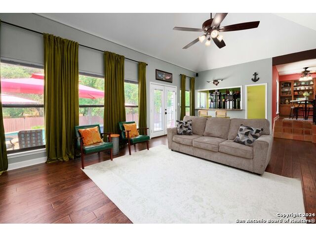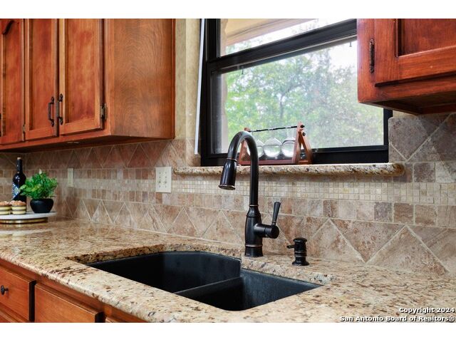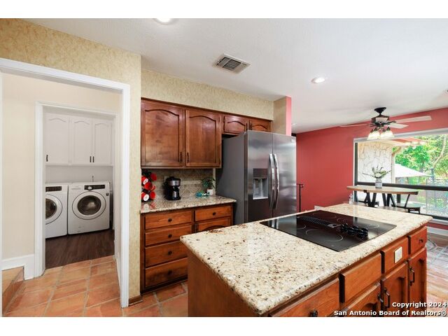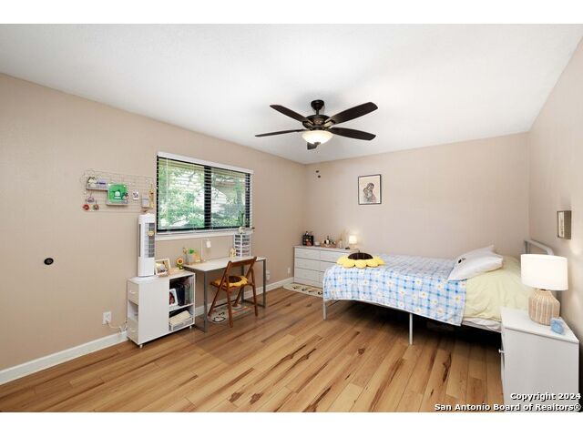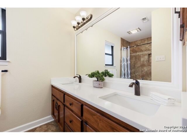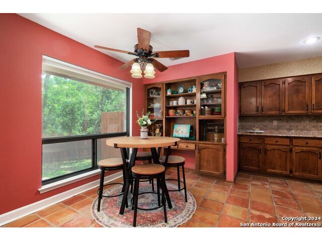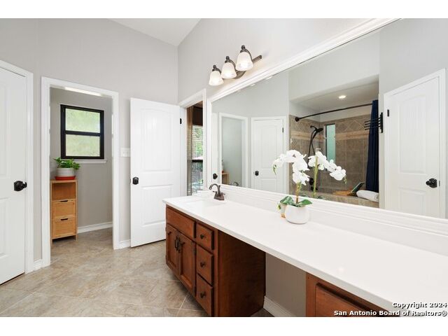 Rare Spanish style home with a "California feel" is located in the quiet Village in the Woods. This exceptional property on a spacious 0.29-acre lot perfectly blends luxury and convenience. Step inside to be greeted by beautiful Saltillo Tile and hard flooring throughout, which offers a sleek and seamless look. The expansive living area is filled with natural light, complemented by a wet bar and cozy fireplace, creating a perfect space for relaxation and entertaining. The primary bedroom, located on the main floor, serves as a private retreat with an en suite bath complete with two separate closets, its own fireplace, and direct outdoor access to your backyard oasis. The kitchen has granite countertops, double ovens placed on a stone-accented wall, a breakfast nook, and a separate dining room. Upstairs, the three additional bedrooms are spacious and well-appointed for privacy. BONUS ROOM currently being used as a media room can be used as a home office, game room, etc. The backyard is designed for entertaining, featuring a sparkling pool and spa, a charming pergola (with water and electricity), and plenty of space for entertaining family and friends. Additional features include a two-car garage, sprinkler system, a recently replaced roof, and with NO HOA, you have the freedom to truly make this home your own.