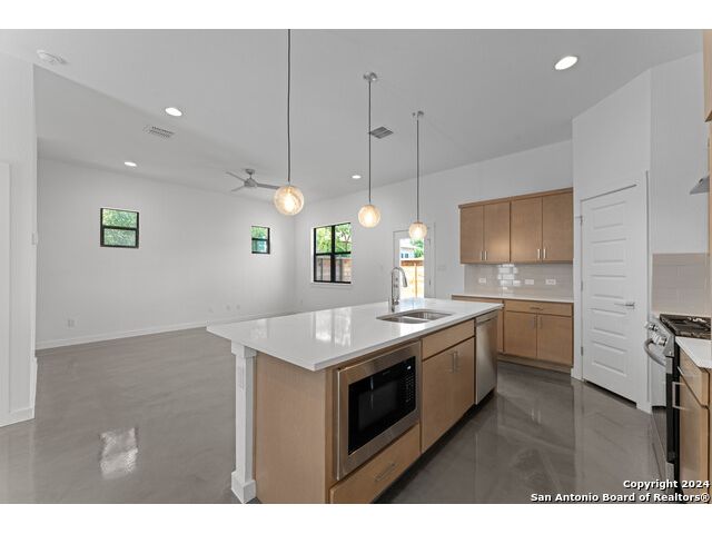 Discover the final home available in East Village by Terramark-an exclusive new development in San Antonio's historic Dignowity Hill. This 3-bed, 2.5-bath modern home spans 1,536 sq. ft. and features open-concept living, designer finishes, and a private backyard. The kitchen includes stainless steel appliances, quartz countertops, and a spacious island perfect for entertaining. Upstairs, the primary suite offers a walk-in closet and a sleek ensuite bath. Enjoy the convenience of gated living and low-maintenance design in one of the city's most walkable neighborhoods. Located minutes from The Pearl, River Walk, and Southtown, and just blocks from the future stadium development and Project MARVEL, this home offers unmatched access to San Antonio's next wave of growth and urban renewal. Walk to Alamo Brewery, Hays Street Bridge, and Lockwood Park.