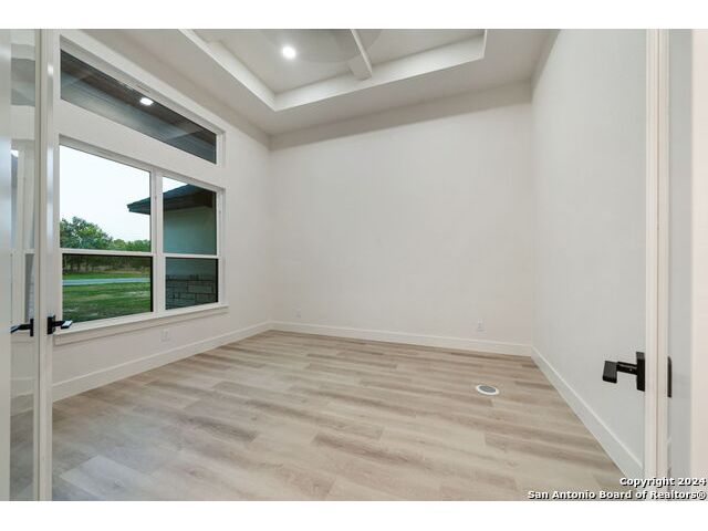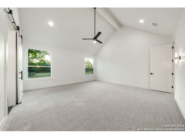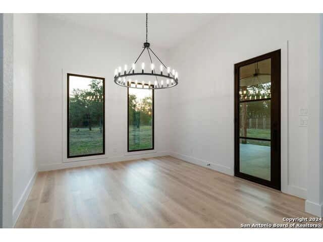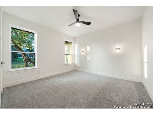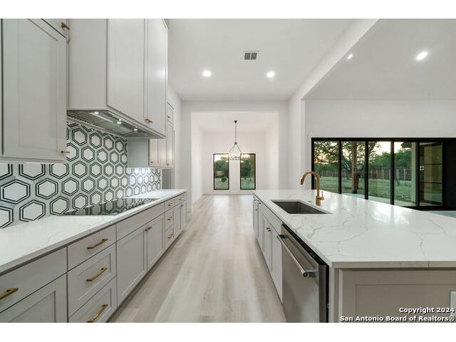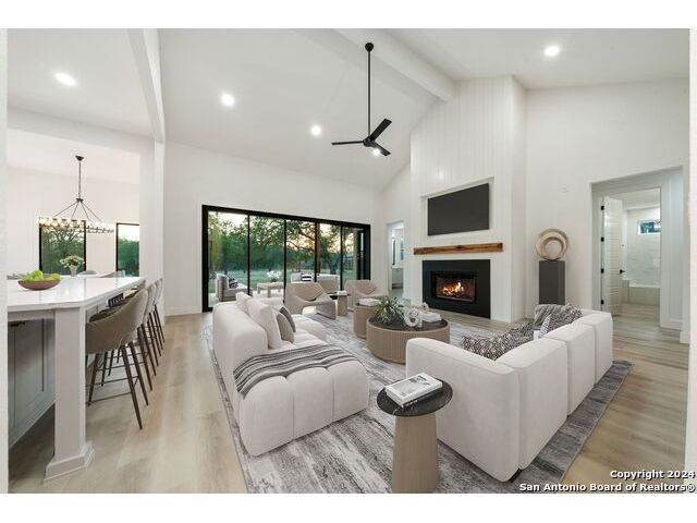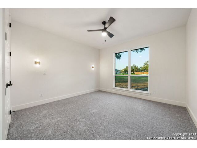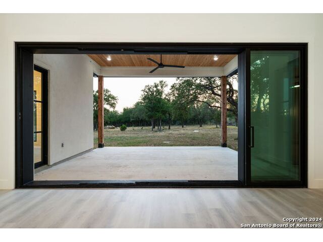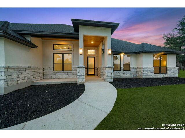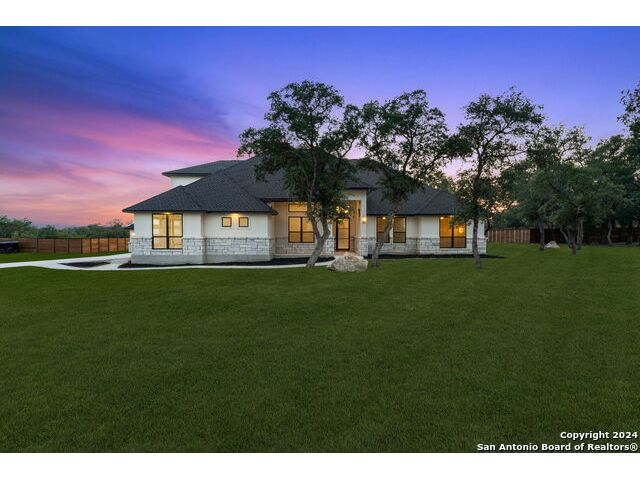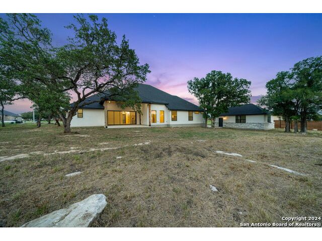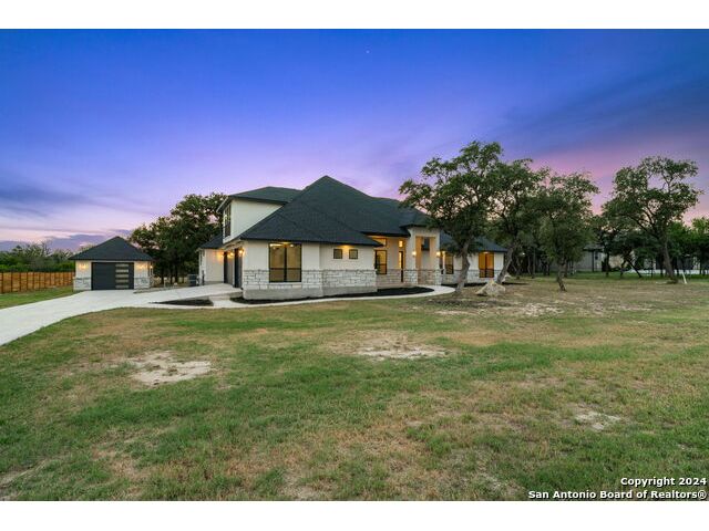 Welcome to your dream retreat nestled in the serene landscapes of a gated community, where contemporary sophistication merges seamlessly with the rustic charm of the hill country. Step into luxury as you enter this brand-new construction home complete with top-of-the-line hardware, finishes and stainless steel appliances. The open floor plan invites you to explore two expansive living areas, perfect for entertaining guests or simply unwinding with loved ones. Situated on a one-acre lot, this property boasts the tranquility of mature trees offering shade and privacy. Ample parking is provided by a spacious three-car garage, accompanied by a separate garage/workshop space, ideal for storing outdoor equipment or pursuing your hobbies. High ceilings throughout the home create an airy atmosphere, while front and back porches offer inviting outdoor spaces to enjoy the natural beauty that surrounds you. Don't miss the opportunity to make this stunning property your own retreat from the everyday hustle and bustle.