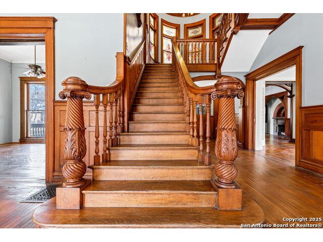 This " Grand Dame" is one of the finest mansions in this Historic district and is a once in a generation opportunity. Sited on a one half acre, naturally cultivated pollinator garden with mostly native plants (no pesticides or chemical fertilizers used), the grounds are pure magic and set the stage for for a truly elegant interior. The "Joske house" had humble beginnings; it started as small single story cut-limestone home in 1881 until circa 1900 when the family designed and built the grand home seen today. The "Joske house" has virtually unparalleled historic features, yet it is intimate and flows beautifully. The approximately 2,200 s/f pink carriage house is a very fine structure in its own right and is believed to have housed one of the first automobiles in the city. The current owners have been tremendous stewards of this magnificent home for the last 39 years.