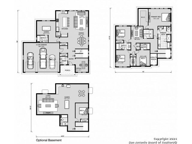 The Ashland two-story, 4 bed and 4.5 bath, 3267 sq. ft design combines simplicity with functionality, and with three distinct living areas there is plenty of space and privacy for the entire family. On the ground floor, a welcoming foyer leads to an open concept main living area with u-shaped entertaining kitchen, spacious dining and family rooms with easy access to the backyard. A separate game room, office, and media room add to the impressive features of this home. On the second floor you'll find three guest bedrooms, two full bathrooms, a convenient laundry room, and a private primary bedroom complete with full 5-piece bath. An optional basement that can be customized to suit your needs delivers additional space and flexibility for today's family.