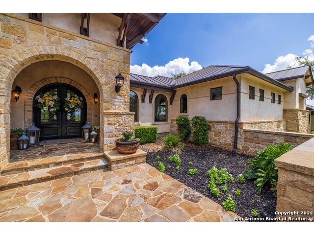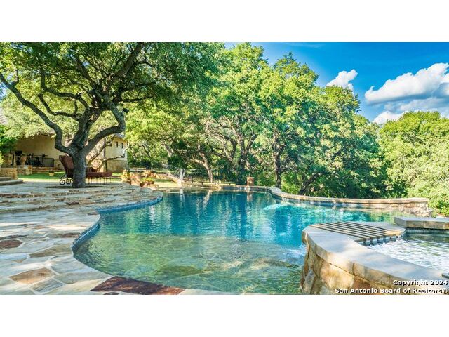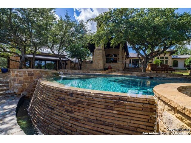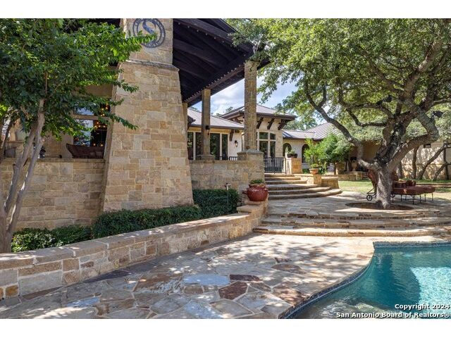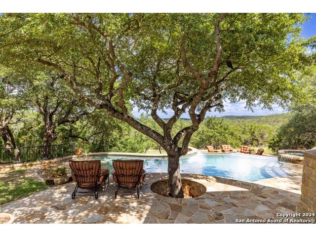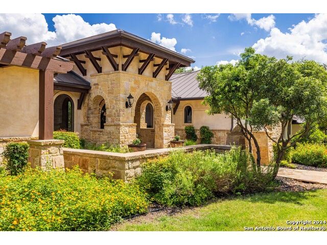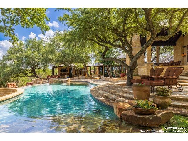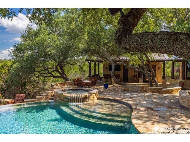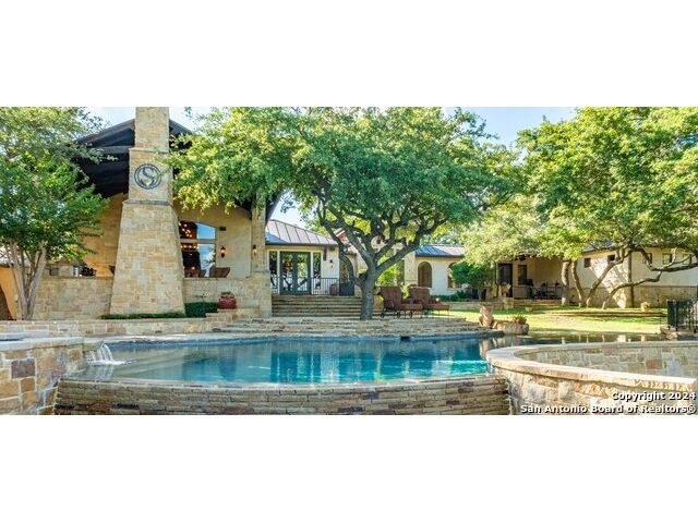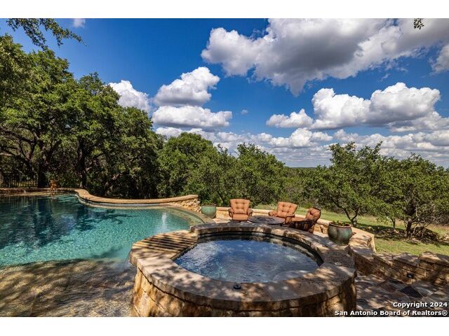 Welcome to 14454 Santa Rita, which backs up to 12,000 acres of restricted conservation land known as Government Canyon, a stunning residence that epitomizes luxury and meticulous craftsmanship. This exquisite home sits on 3.24 acres of land and features 4 spacious bedrooms, each with its own full bath and built-ins, complemented by 2 additional half baths. A charming casita with a full bath provides a perfect retreat for guests. The master bedroom is a true sanctuary, boasting an outdoor patio and walk-in closets with built-in shelves, offering ample storage and convenience. The other bedrooms also feature built-ins and cozy window seats, adding charm and functionality to each room. Step inside to discover an inviting library that seamlessly connects to an upstairs office, ideal for working from home. Wine enthusiasts will appreciate the temperature-controlled wine cellar, perfect for storing and showcasing your collection. The house is equipped with a state-of-the-art speaker system throughout, ensuring your favorite tunes are always at your fingertips. The culinary heart of the home is the kitchen, adorned with high-end Wolf appliances, a large walk-in pantry, and a butler's pantry. The house is enhanced by the artistry of Chris Voss, whose chandeliers illuminate the space with elegance throughout the house. The attention to detail extends to the finely painted walls, creating a warm and inviting atmosphere. Outdoor living is equally impressive, with a backyard patio designed for entertaining. Enjoy the outdoor kitchen area, complete with a grill and fireplace, perfect for gatherings with family and friends. The infinity pool, featuring a beach entry, offers breathtaking views of the hill country, creating a serene and picturesque setting. Built with an unwavering commitment to quality and design, 14454 Santa Rita is a home where luxury meets functionality, offering a lifestyle of unparalleled comfort and sophistication.