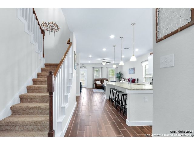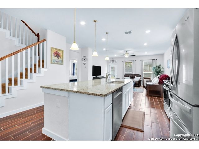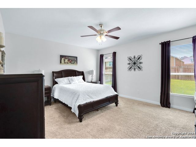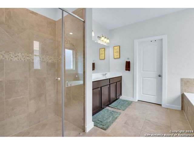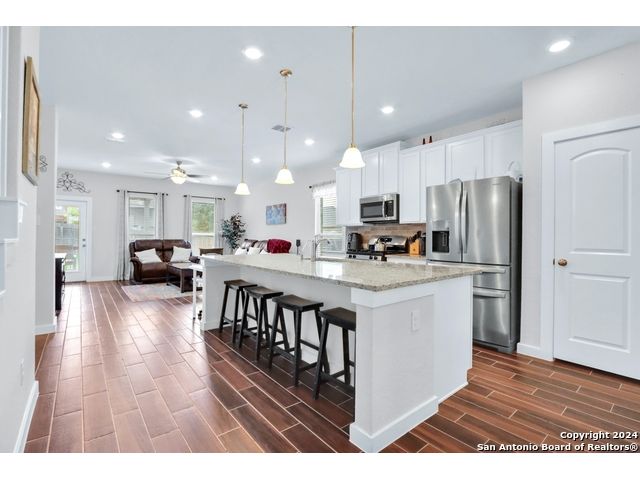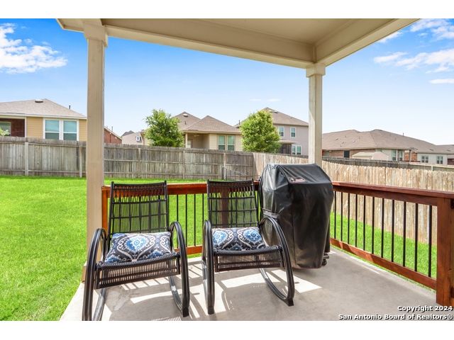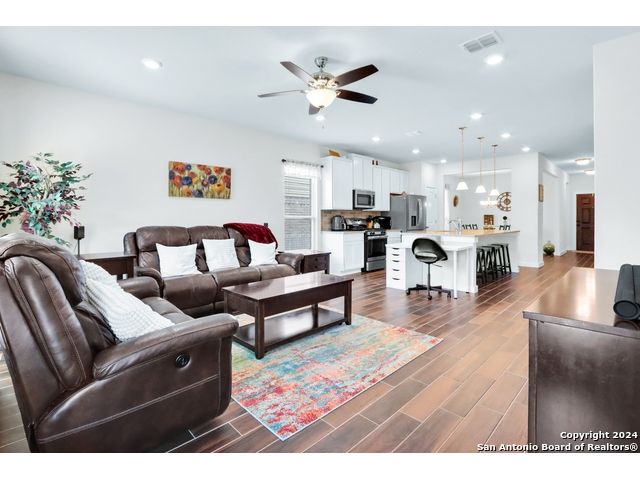 This beautiful 4-bedroom, 2.5-bath home offers over 2,550 sqft of spacious living in a highly sought-after gated community. Step inside and enjoy an open and inviting layout perfect for modern living and entertaining. The kitchen comes fully equipped - all appliances convey - and includes a reverse osmosis system and water softener for your comfort. Upstairs, a spacious game room with a projector screen and frame provides the ideal spot for movie nights or family fun. Primary suit is located on the main floor and features a separate tub with a walk in shower, double sink vanity and walk in closet. All bedrooms have a ceiling fan and walk in closet. Outside, enjoy a lush Zoysia-sodded yard front and back, maintained with ease and a covered patio. The 2-car garage features extended space, plus both a WiFi-enabled and standard opener for convenience and security. Community offers a pool, playgrounds, walking trail and pickleball courts. Located just a short walk to Ladera Elementary and zoned to Medina Valley ISD, this home truly has it all. Seller is offering $10,000 to the buyer and a 1-year home warranty - move in with confidence and peace of mind!