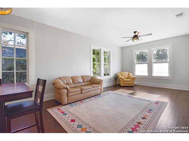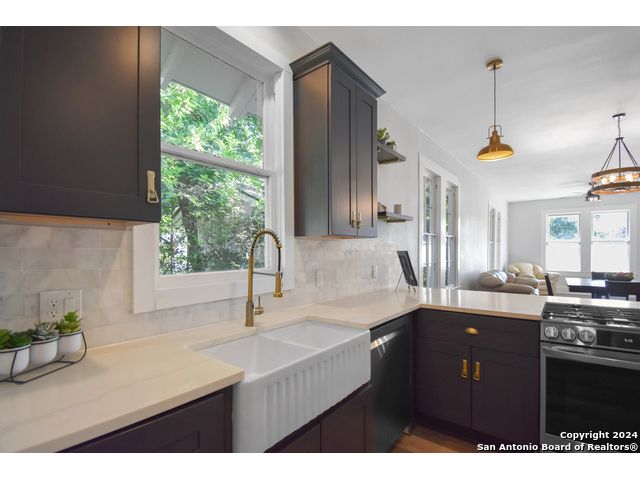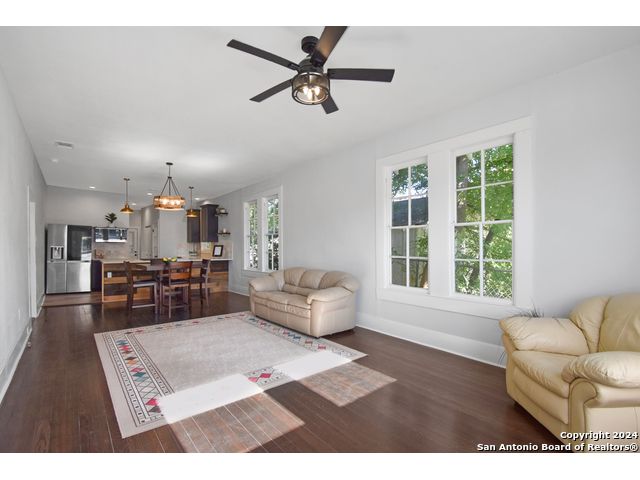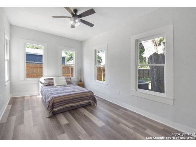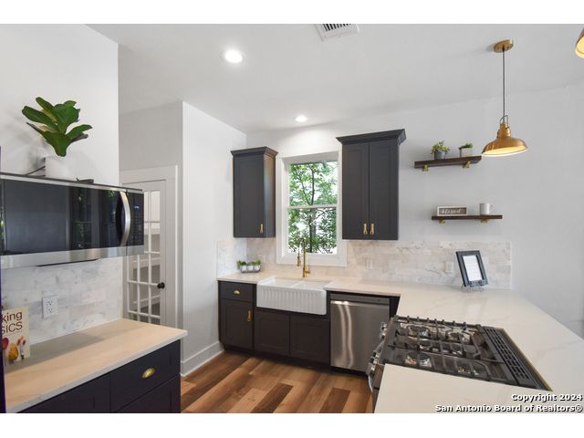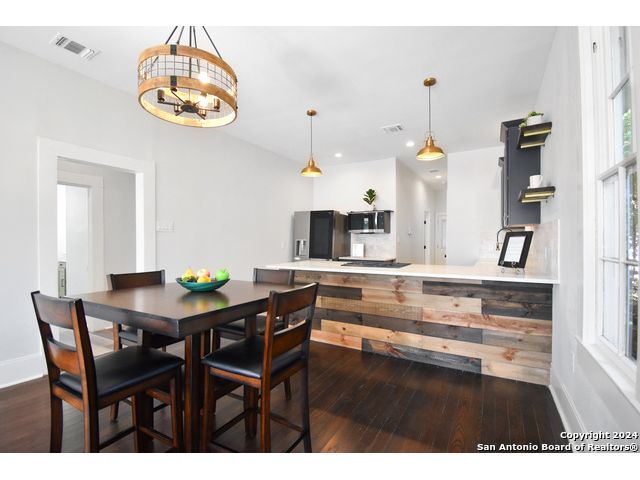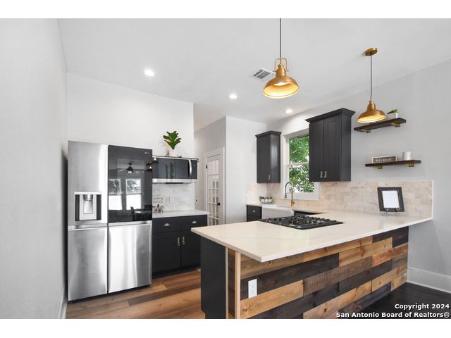 *BRAND NEW GUTTERS*APPLIANCES CONVEY* Nestled in the heart of Historic Dignowity Hill, this charming home features three spacious bedrooms and two pristine bathrooms. Impeccably maintained, the home boasts fresh, contemporary paint throughout, reflecting a super clean and modern aesthetic, Quartz counters, Luxury Vinyl Plank flooring, TANKLESS WATER HEATER, No carpet, REFRIGERATOR included, farmhouse sink, LG Appliances, Original Hardwood, marbled tile backsplash. Step outside to discover an oversized backyard oasis, perfect for relaxation and entertainment, while the amazing gated front yard offers a grand, inviting entrance. This residence seamlessly blends comfort and style, creating a perfect sanctuary for anyone!
