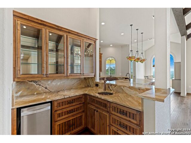 Priceless View! This custom-designed home on *17.65 acres* offers sweeping city views & stunning natural light throughout. The open floor plan features a great room w/ soaring ceilings, SE-facing wall of windows, formal dining, a wet bar & a chef's kitchen complete w/ a massive island, gas stove, custom cabinetry, 12' ceilings, walk-in pantry & breakfast nook. The sunroom off the kitchen is ideal for relaxing, while the owner's suite includes a spacious bath w/ a huge walk-in shower, dual vanities & two large closets. The den/office features a fireplace surrounded by built-ins. Featuring a complete suite living/dining & full kitchen, a spacious bedroom, bathroom, W/D connections, 1-car garage & a separate entrance, the lower-level offers 1,000 sq ft of private accommodations perfect for guests, multi-generational living, or as income potential. Did we mention the view? Outside, enjoy a screened-in observation deck, native landscaping, rock retaining walls & a 2-car garage. Additional unrestricted acreage is available for purchase with this sale. Call today to schedule a showing of this remarkable property. OWNER IS LREA.