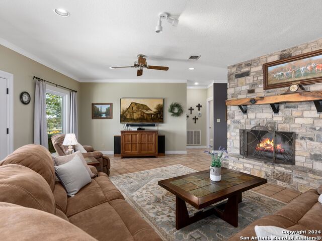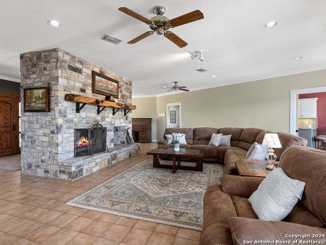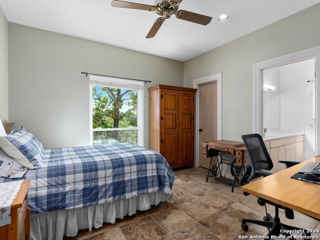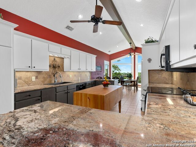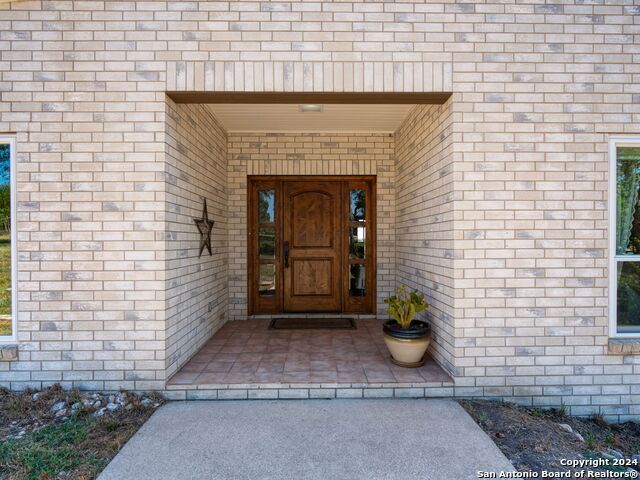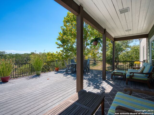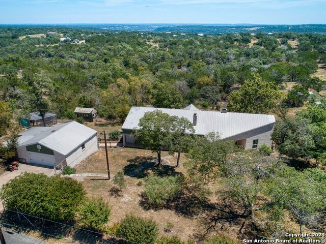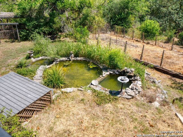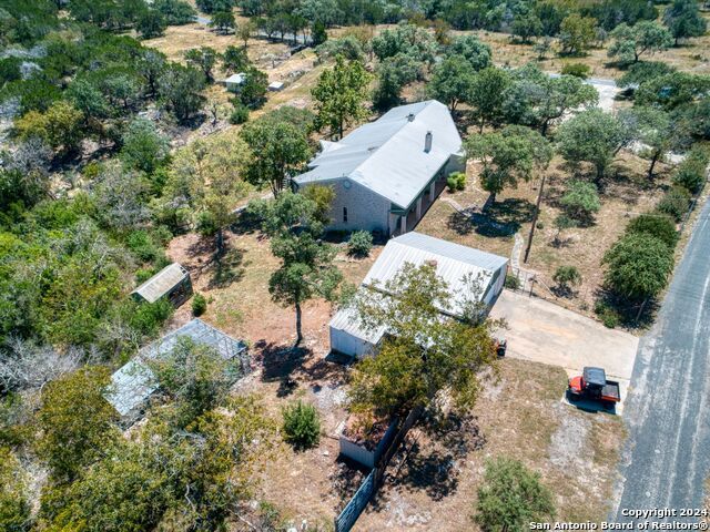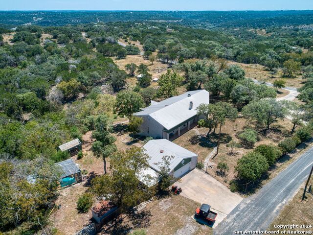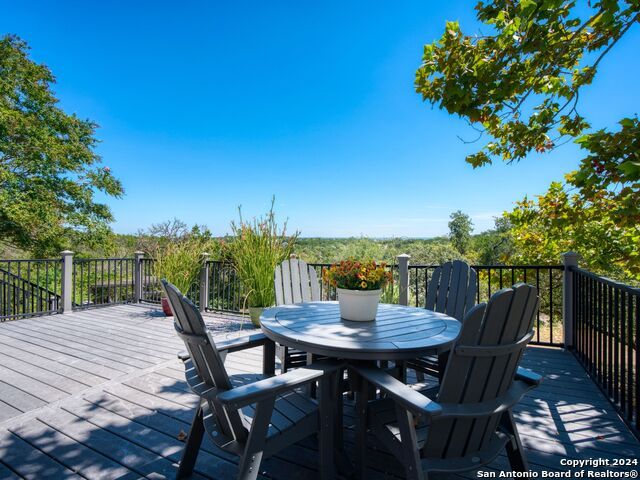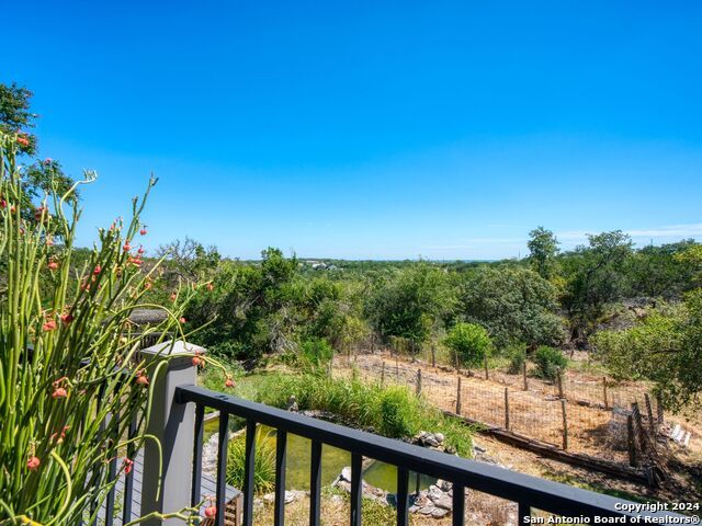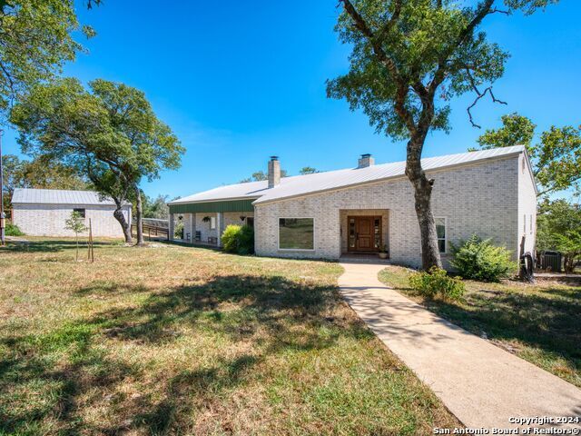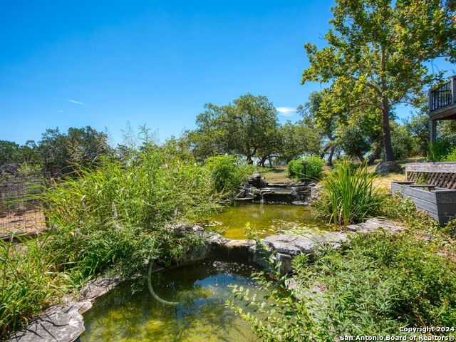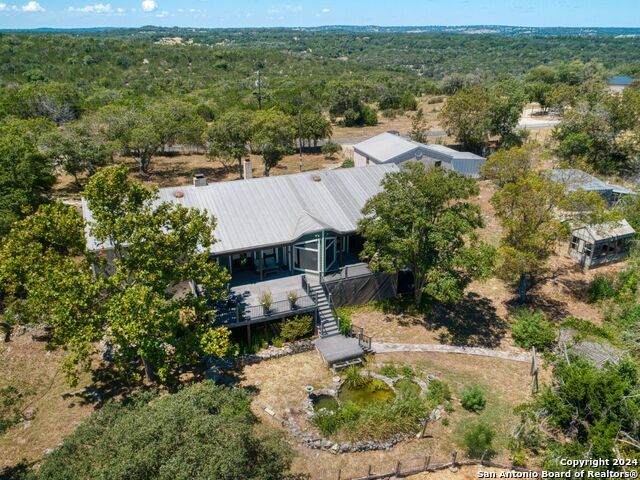 Nestled in the Heart of the Scenic Hill Country between Kerrville and Medina, this stunning wildlife exempt property offers unparalleled living experience with breathtaking panoramic views with rolling hills from almost every room! The property seamlessly blends modern luxury with rustic charm, featuring spacious living spaces and massive windows that capture the beauty of the surrounding landscape. The kitchen is equipped with large woodblock island, granite counters, built in refrigerator, farmhouse sink, tile backsplash, abundance of custom cabinets. The living room features a rock fireplace (the rock was collected on the property) and views galore, master bedroom has a sitting area/office alcove with more impressive views, expansive master bath with stall shower, luxurious tub overlooking the hills with spa-like feel. Additional living space off of kitchen with second wood burning fireplace. Massive deck, covered patio, rainwater system, pond with waterfall. The 12.7 acres are perimeter fenced, with approximately 1.5 acres around home high-fenced to keep deer out. Large producing chicken coop!