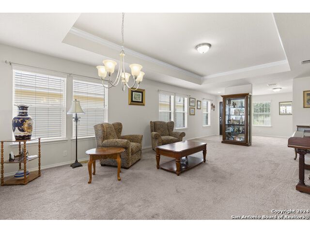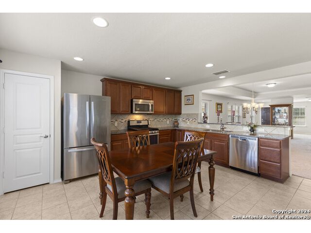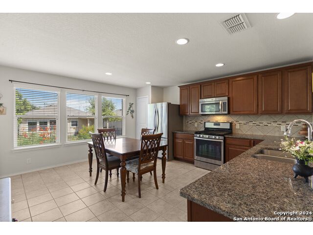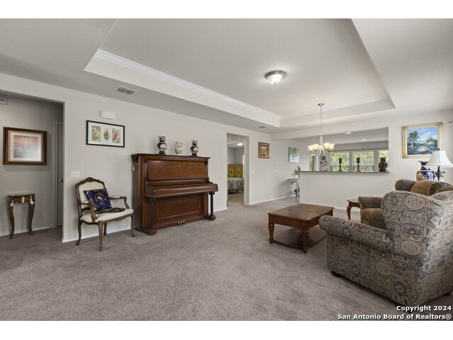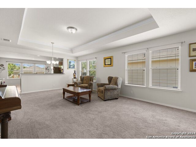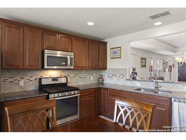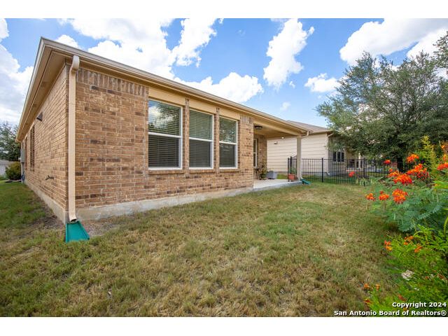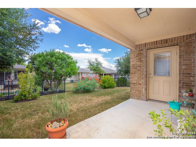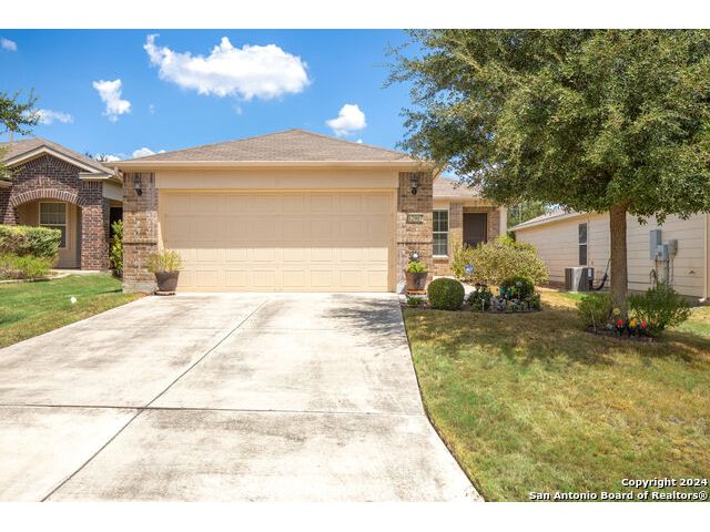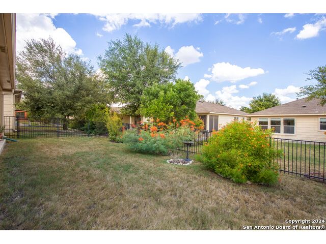 Discover a lifestyle that keeps you active, engaged, and surrounded by like-minded individuals at Hill Country Retreat. This vibrant retirement community offers everything you need to stay physically fit, mentally sharp, and socially connected. Enjoy leisurely walks along scenic trails, dive into the indoor or outdoor pools, or break a sweat in the fully-equipped fitness center. Whether you're interested in joining a book club, playing tennis, or learning new tech skills, the community's 28,000-square-foot amenity center is your gateway to endless possibilities. From group activities to serene solo pursuits, Hill Country Retreat ensures there's always something happening that speaks to your passions. Now, imagine coming home to a beautifully maintained one-story residence that perfectly complements this dynamic lifestyle. This charming home offers 2 bedrooms, 2 baths, and a versatile flex room that can serve as a study or a cozy sitting area. The open living room is a welcoming space where natural light pours in, accentuated by a stunning tiered ceiling. The kitchen is a chef's delight, featuring a stainless steel appliance package, 42" cabinets, granite countertops, and a convenient breakfast bar-perfect for casual dining or hosting friends. Step outside to a covered patio that invites you to relax and enjoy the beautifully landscaped yard, enclosed by wrought iron fencing. With features like a water softener, alarm system, and sprinkler system, this home combines comfort with practicality. Located just 20 minutes from downtown San Antonio, and close to essential amenities like Lackland AFB, this home is not only a retreat but also a smart investment for your future. Whether you're savoring a peaceful evening at home or heading out for a round of golf or a social event, this residence offers the perfect balance of convenience and tranquility in a community designed to enrich your retirement years. ** New Roof installed May '25 **