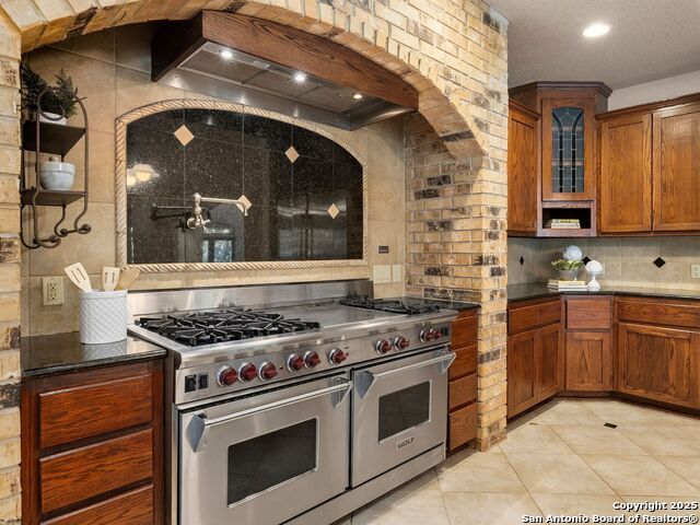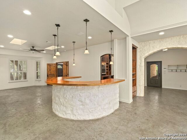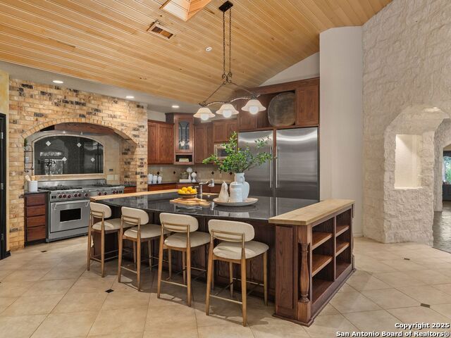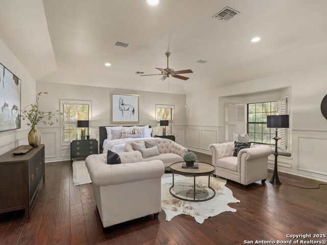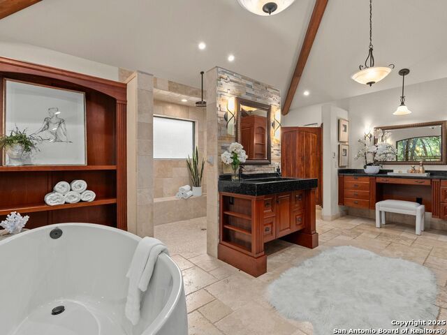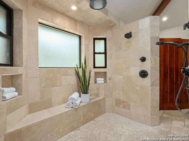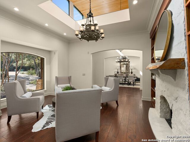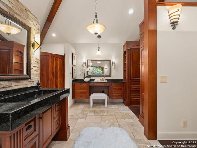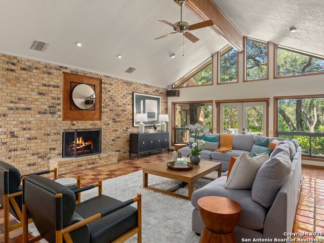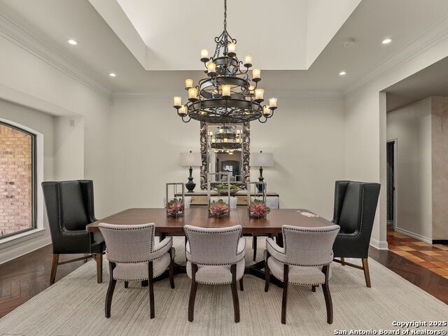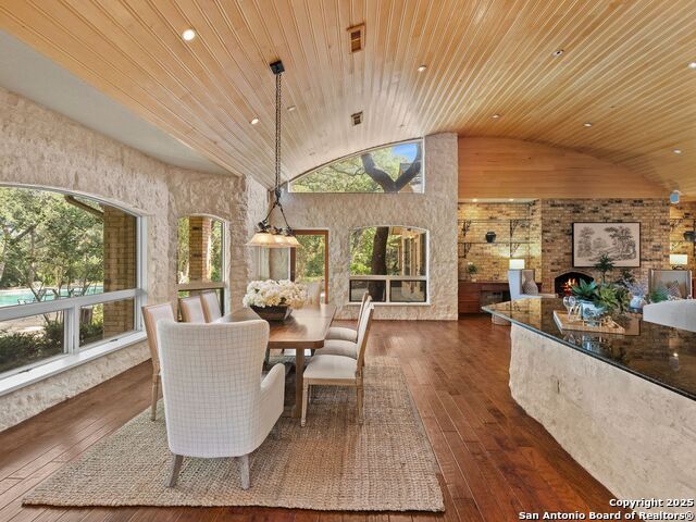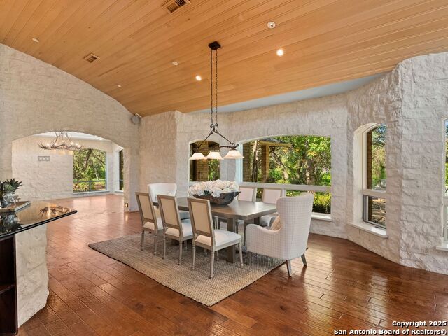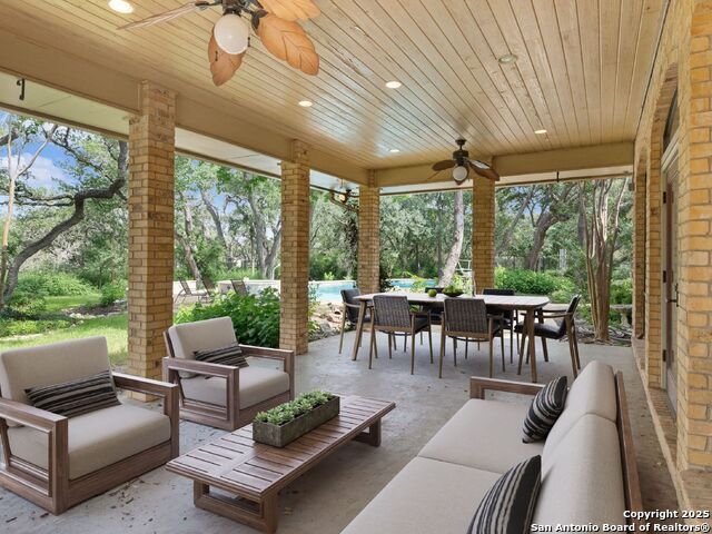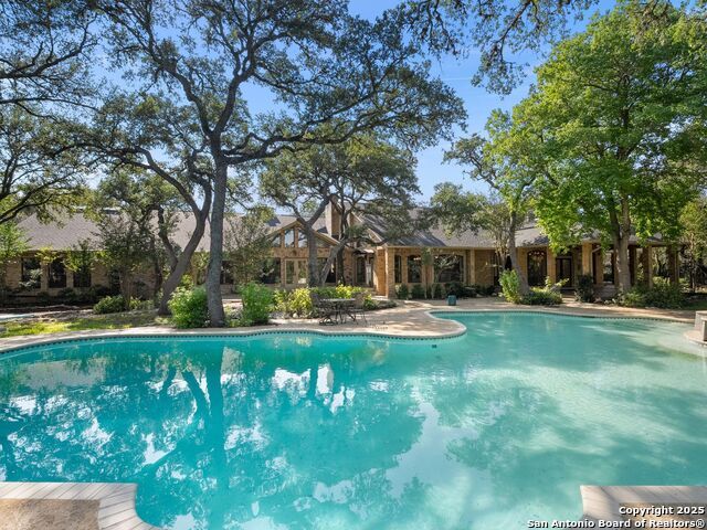 Discover a 6 bedroom home that lives like a private resort in the heart of San Antonio just 12 minutes from the San Antonio International Airport. The oak trees are lighted and the property is in a gated enclave of 11 estates in Hill Country Village. Enjoy a 72,000 gallon salt water 12 foot deep pool, spa, tennis court (could be pickle ball) and fenced gardens on manicured grounds where a large tortoise lived happily, koi pond and two gated pet yards. The screened in lanai off the utility room downstairs is a lovely place to enjoy your morning tea. The stately home is over 8,000 sq ft accentuated with three fireplaces, multiple living, dining and entertaining spaces plus bonus rooms for a variety of lifestyle needs. Hire the band, bring in the bartenders and open the dance floor in the light filled vaulted ceiling 22' x 26' entertainment room. A chef's kitchen is ready for your next holiday Chile Party. Built in 3' x 6' closet safe. The guest suite with full bath has a separate exterior door to private entry. Upstairs is a large play room/study/office with a .5 bath and a outside patio nestled in the tree tops. Two car garage and covered carport at the home plus a large four car detached garage at the back of the property. It is quiet and peaceful - just like a Texas hill country retreat. The Pearl District is 12 miles and the Alamo in the center of downtown is 14 miles.