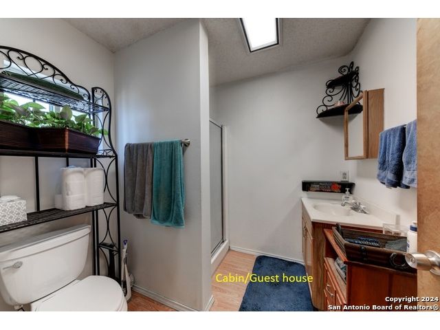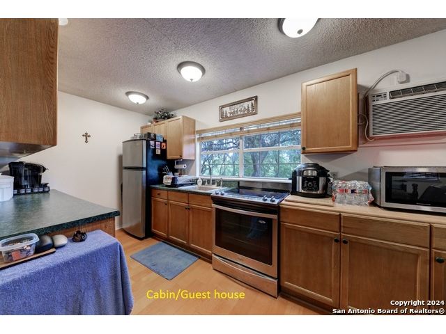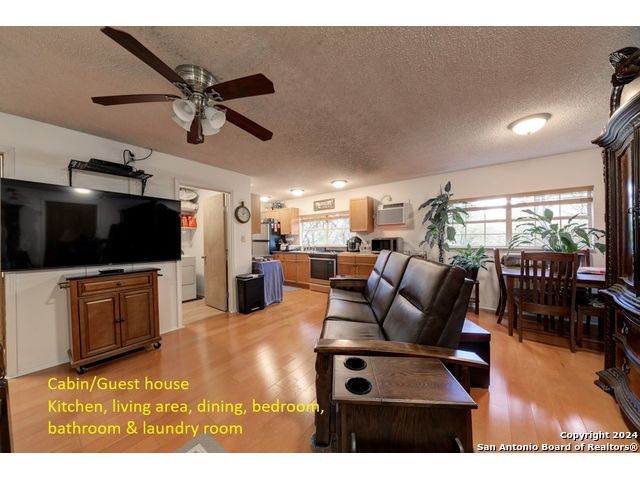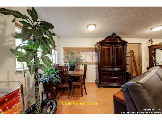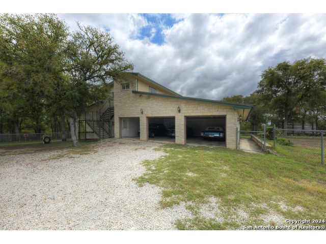 Being inside New Braunfels city limits and bordering other commercial property on Hwy 46, It seems reasonable that a commercial designation could be obtained for the subject property. This property has 3 significant structures with a gross square footage of 6,921 sq ft. The main house is 3800 square feet of air conditioned space (3 bedroom, 2.5 bath) and 1,121 sq ft of an oversized attached 3 car garage. The house is 2 stories, but the second floor is a one room climate controlled storage space. There is access from both the inside and the outside of the house to the second floor. The main floor has an enormous open space with living, dining, kitchen and more. All this space is very conducive to commercial use. The shop building is 2,000 sq ft on slab with metal roof and walls and is insulated. The shop also has an office area with bathroom and overhead doors. The 3rd building is a nice cabin of 576 square feet. It's fully finished out with a one bed and bath apartment arrangement. Much of the property is fenced and cross fenced with a metal electric gate entrance. This is a very clean property with a lot to offer for multiple uses. Be creative!!