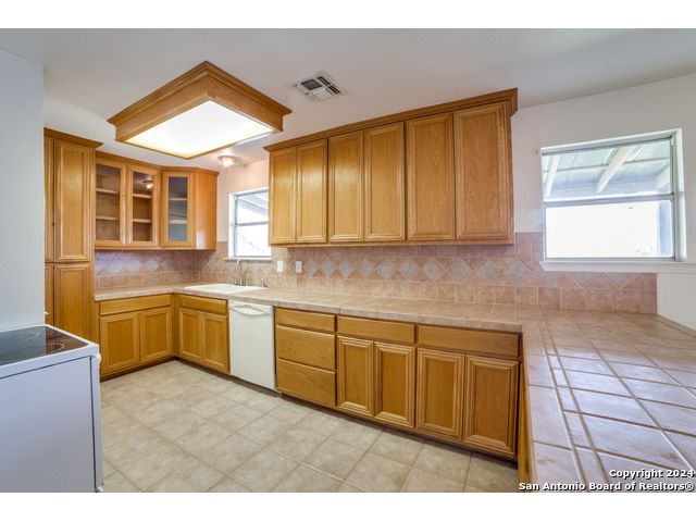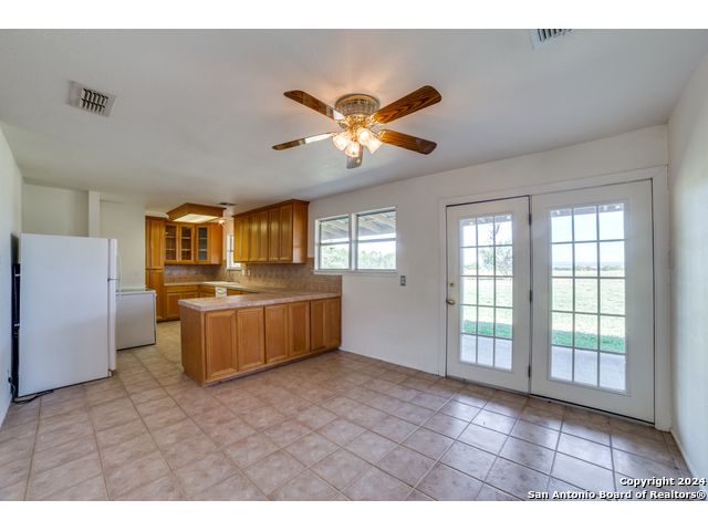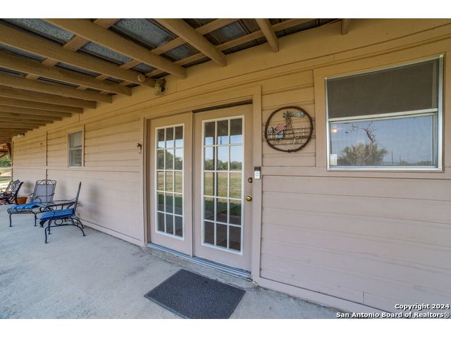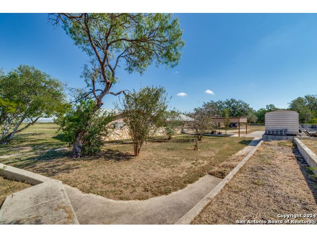 VIEWS! Situated in the Green Glen Acres subdivision, this property offers views to the North that are breathtaking. The well maintained home has 4 bedrooms each with their own closet and 2 full baths. The kitchen has ample storage and countertop space. Outdoors you will find a deep front porch with gorgeous views with an expansive covered outdoor area perfect for entertaining. Also on the property is a three-level amphitheater constructed of concrete and over 8 feet tall at it's highest point. Two sheds/workspaces offer more storage and opportunity for a he or she shed. Also nestled in the trees to the west of the house is a concrete slab that was poured with plumbing lines for a new home. The previous owners did not finish it, however the current owners do have the house plans. Mature oak, mesquite, and other trees beautify the property providing a habitat for abundant wildlife. MVISD campuses, Potranco Elementary and Lom Alta Middle School, are less than 3 miles away as well as a new high school currently under construction. 12 miles away is historic downtown Castroville and 27 miles is downtown San Antonio. This home is close and convenient to both small town and big city amenities. Green Glen acres is a long established community of minimum two acre lots giving you the space you need. Lot 239 is also able to be purchased separately.