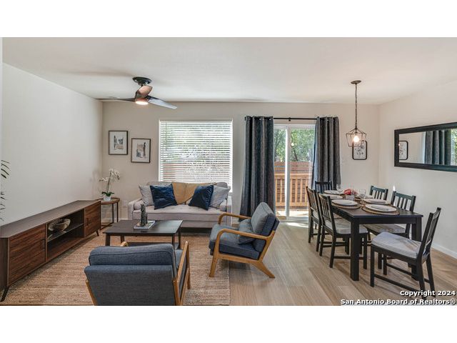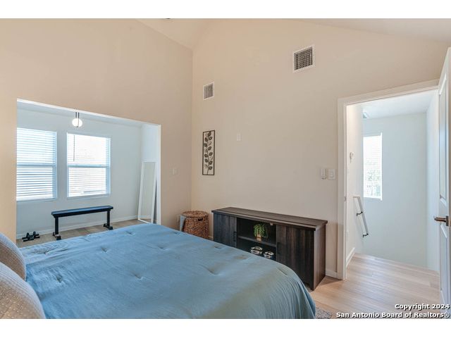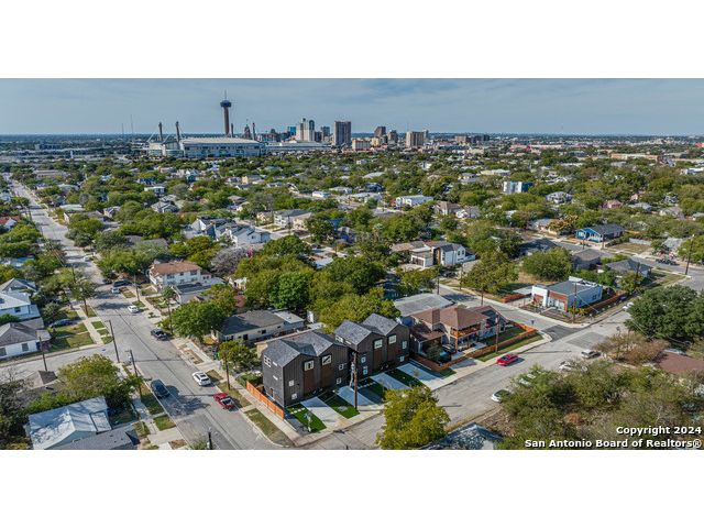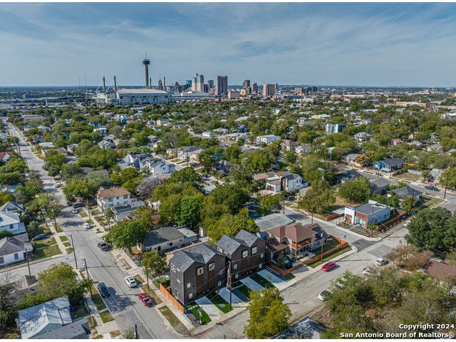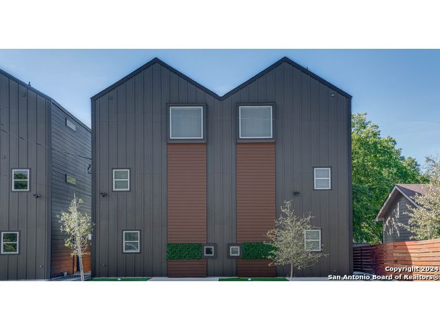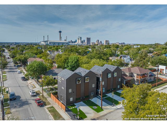 Experience urban sophistication at its finest in this modern residence, ideally situated near the Alamodome and Tower of the Americas. Enjoy the convenience of a short 5-9 minute drive to popular destinations such as The Pearl, the San Antonio Zoo, and the Riverwalk. The first floor features a sleek kitchen that seamlessly connects to a stylish living-dining area, accompanied by a convenient half bathroom. Ascend to the second floor, where you'll discover two well-appointed bedrooms, each with closets and a designated workspace, as well as a full shared bathroom. The third floor reveals an impressive primary bedroom, showcasing cathedral ceilings and a versatile bonus area perfect for a studio, gym, or luxurious walk-in closet. Bathed in natural light and thoughtfully designed with a contemporary aesthetic, this home is the epitome of modern living.