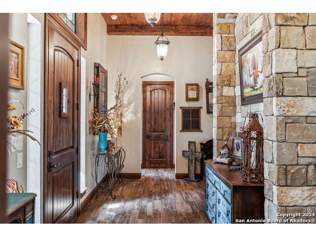 **Hill Country Living at Its Best** Nestled on 6.58 acres in the desirable Doehne Oaks subdivision, this charming 3-bedroom, 3-bath Hill Country ranch-style home offers a perfect blend of privacy and convenience, located just between Bullverde and New Braunfels. The property is beautifully shaded by mature live oak trees and features a small pond, adding to its serene outdoor appeal. Inside, you'll find spacious living areas, while the exterior boasts a 2-car garage, a separate golf cart garage, RV storage, and a workshop or additional garage space. With an agricultural exemption in place, this rare find offers the tranquility of country living, just a short drive from all the amenities of town. This is a true retreat for those seeking a peaceful lifestyle without being to far from town.