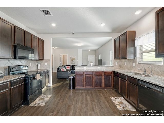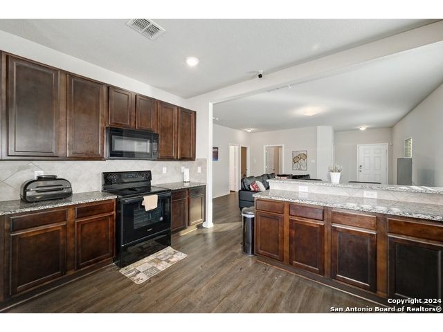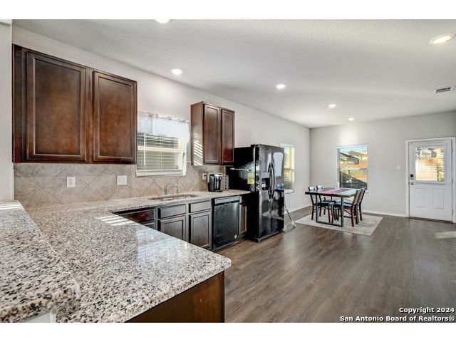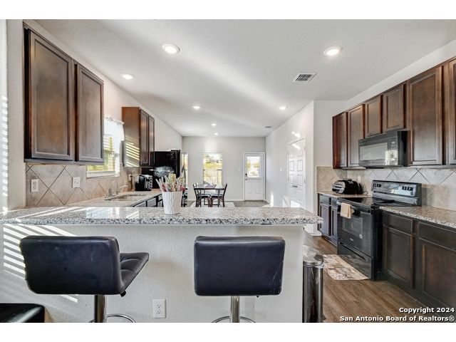 **VA Assumable Mortgage 2.625 interest rate ** Welcome to this beautiful one-story home close to lackland, where impeccable maintenance and thoughtful design combine to create the perfect living space and did you see the solar panels. From the moment you step inside, you'll be greeted by high ceilings and luxury vinyl plank flooring that flows seamlessly throughout the home, offering both beauty and durability. The heart of the home, the kitchen, is a chef's delight. This spacious eat in kitchen features sleek granite countertops, stainless steel appliances, a convenient breakfast bar, and ample counter space for food prep, all framed by ample cabinetry, a great pantry and space for a large kitchen table. Whether you're preparing a casual meal or hosting a gathering, this kitchen is equipped to handle it all. This home boasts three generously sized bedrooms, including a luxurious primary suite. The primary bedroom is a true retreat with its vaulted ceilings, expansive walk-in closet, and an ensuite. The ensuite bathroom offers dual sinks, a walk-in shower, and a soaking tub, providing the perfect place to unwind after a long day. Do not miss out on this wonderful opportunity. Welcome Home!