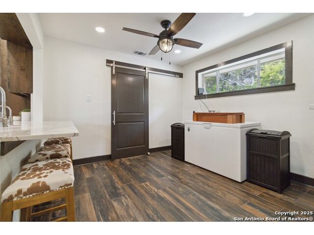 This extraordinary ranch offers an unparalleled blend of luxury, and tranquility. Spread across 124 acres of pristine land, it is a haven for outdoor enthusiasts and those seeking a peaceful retreat. The newly chip paved road leads the way to a recently renovated home featuring 4 bedrooms (including dual primaries), 4.5 bathrooms, a kitchen with top of the line Bosch appliances, and a game room. Enjoy the breathtaking hilltop views from the two story wall of windows, wrap around porch, or the balcony just off the secondary bedrooms. A reliable private water well and septic system provide two fewer monthly bills than what you pay in the city. With high speed Google Fiber available, you can still be as connected as you need to be. Property overview: Completely high fenced to contain approximately 100 exotic game including Scimitar Oryx, Blackbuck, Axis, Mouflon Rams, Fallow, Red Stag, and Trophy White-tails. Four hunting blinds, two gravity fed protein feeders, three corn feeders, a bale hay feeder, two gravity fed water troughs, a 2,500 gallon water tank, two new 20' storage containers, and an outdoor shooting range (approximately 40 yards). Ag exemption keeps taxes low. Excellent income potential includes: Air BNB rental (currently renting for $875 per night) and guided trophy hunts. Aside from potential activities on the ranch including hunting, ATV cruising, shooting practice, BBQ and more, hikers will love the convenience to Lost Maples and Garner State Parks. Other nearby attractions include the charming town of Utopia: home to one of the most beautiful 9-hole golf courses in Texas, entertaining rodeos, and seasonal festivities. Swim, kayak, or fish at the Frio River or take in a rodeo at nearby Bandera, the "Cowboy Capital of Texas". Should you need to get to a larger city, you have only a 1 hour drive to Kerrville, 1.5 hrs. to San Antonio, and 1 hr. 15 minutes to Boerne.