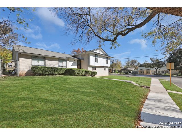 Location, Location, This 1.5 story, 3 bedroom, 2 bath home is on a spacious .23 acre lot and is located close to plenty of shopping, restaurants and Lackland AFB. Upon entering, you'll find a bright living/ dinning area leading to the kitchen and Family room. The spacious primary and 2 Bedrooms are located on the .5 level of the home. As you step into your backyard you will see a well maintained in ground pool, this home is perfect for hosting familiy gatherings.