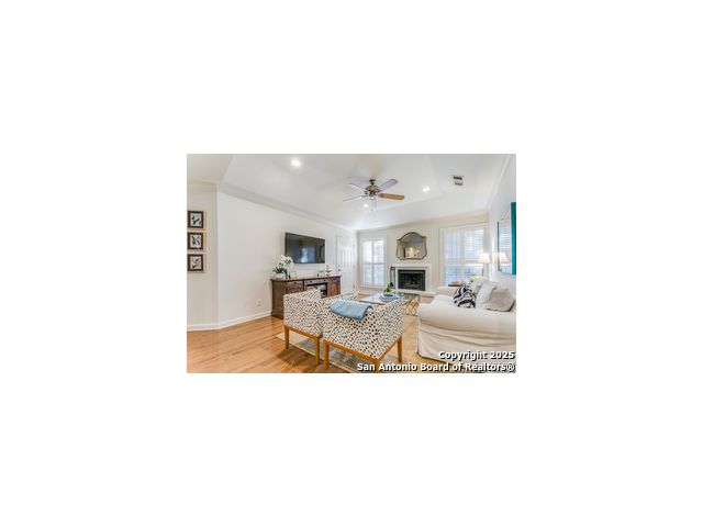 This stunning condo, located in the heart of Alamo Heights, offers a perfect blend of comfort and convenience. The living room is bright and airy, featuring high ceilings, hardwood floors, and a cozy fireplace. The spacious primary suite boasts wood floors, a generous walk-in closet, and an en-suite bathroom with designer tile flooring, a garden tub, and a separate shower. The secondary bedroom and bathroom also showcase beautiful wood floors and designer tile. Additional highlights include a large pantry, stacked washer/dryer closet, a built-in wet bar, and a large private balcony with storage closet. The unit also comes with a reserved covered parking space, and water is included in the HOA fees. Don't miss the opportunity to make this beautiful home your own!