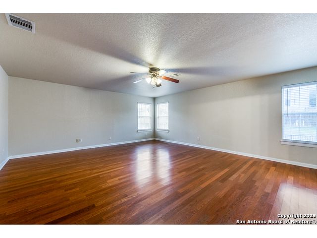 Spacious and energy-efficient, this stunning home in the gated Mesa Verde community of Stone Oak comes equipped with solar panels and an EV charging station! From the dramatic arches to the rich wood floors, the open and light-filled layout is designed to impress. The entertainer's kitchen features 42" cabinets, a walk-in pantry, double ovens, a smooth cooktop, and recently updated countertops. The main level offers a spacious family room and two additional versatile areas for formal living, dining, or home office space. Upstairs, you'll find a HUGE master retreat complete with a garden tub, shower, dual vanities, and a walk-in closet. The second floor also boasts a game room and generously sized secondary bedrooms, each with walk-in closets. Step outside to a covered patio overlooking a beautifully tiered lot with a full sprinkler system, perfect for outdoor gatherings. The community offers a pool for relaxation and recreation. Recent updates include a newer roof and water heater (2021), ensuring peace of mind. Don't miss this exceptional home in one of San Antonio's most sought-after neighborhoods!