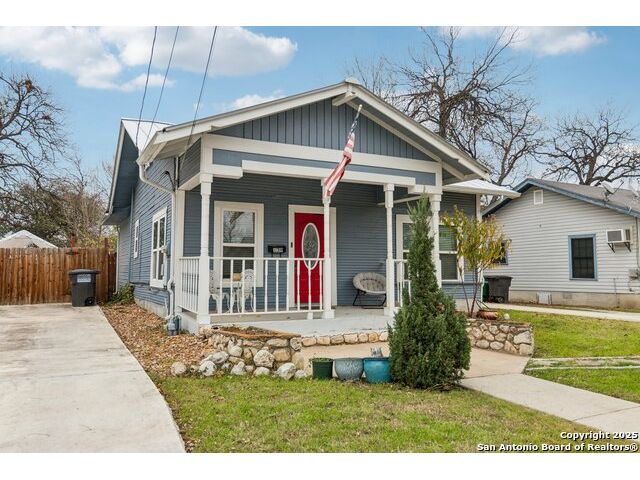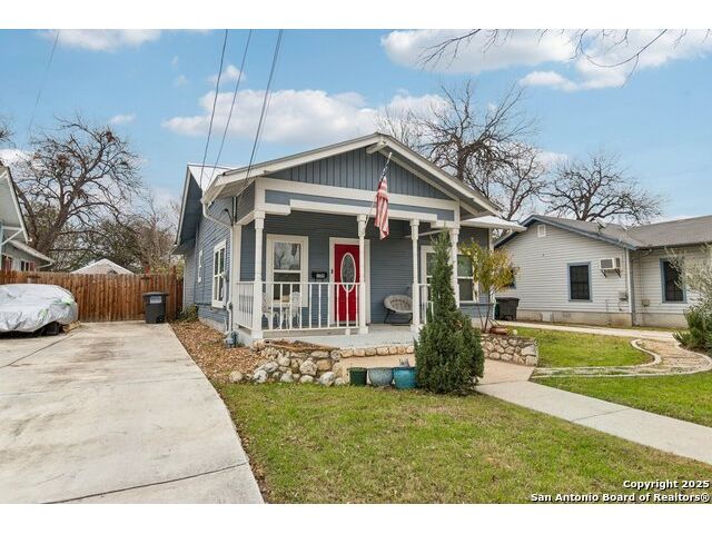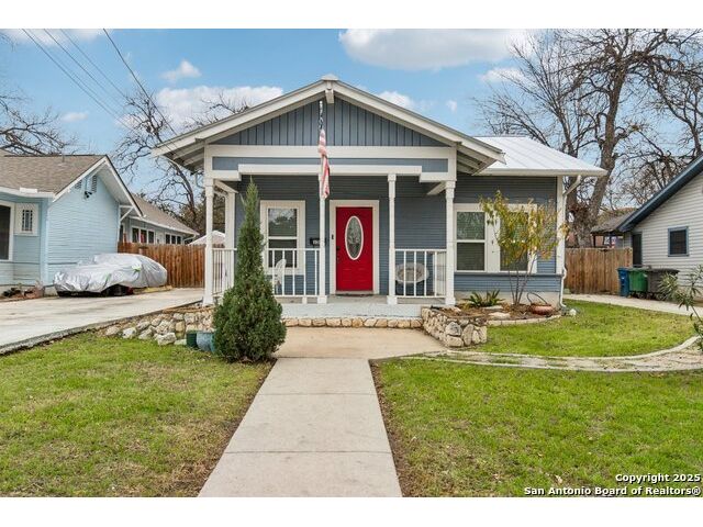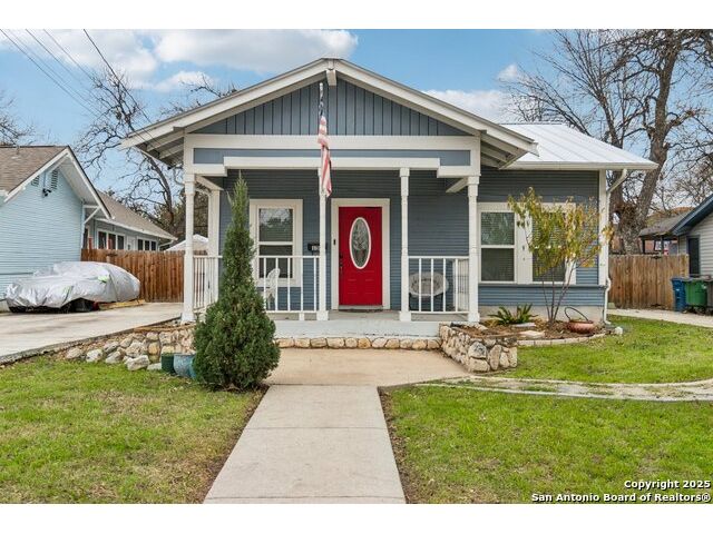 Updated 1907 Craftsman bungalow * Metal roof (2024) * Near San Antonio River & Blue Star Arts Complex Discover this beautifully refreshed 1907 Craftsman bungalow in San Antonio's historic Lone Star District, where timeless character meets modern functionality. A wide front porch welcomes you into bright, open living spaces with tall ceilings, abundant natural light, and original architectural details that preserve the home's vintage charm. The kitchen offers gas cooking, quartz countertops, stainless steel appliances, ample cabinetry, and a dedicated dining area ideal for entertaining. Recent improvements include a new standing-seam metal roof installed in May 2024, providing durability and peace of mind. The spacious backyard includes a covered patio perfect for outdoor dining, gatherings, or quiet evenings, plus additional storage for added convenience. This property combines historic appeal with practical upgrades for today's lifestyle. Located just minutes from the San Antonio River and Mission Reach Trail, Blue Star Arts Complex, King William District, Roosevelt Park, and the upcoming San Pedro Creek project. Easy access to Southtown's art galleries, restaurants, breweries, and live music venues. A rare opportunity to own a piece of San Antonio history with the comfort and efficiency of modern living.