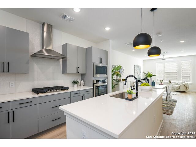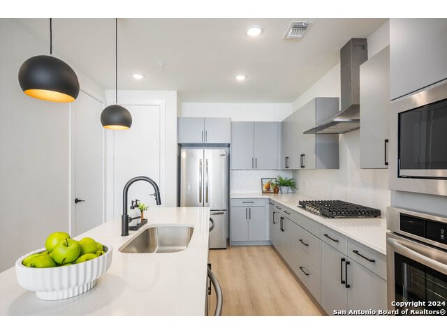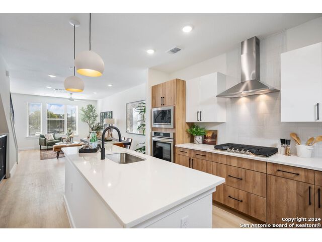 28 Units Sold/Under Contract! Only 2 units left in Building D with downtown views. Introducing Grayson House, 48 new townhomes located just blocks from San Antonio's Historic Pearl District and close proximity to Downtown San Antonio and St. Mary's Strip. This exceptional new community features three and four-story townhomes showcasing sleek, thoughtful design, open layouts, modern finishes, and stunning city views for select units. Experience elegant features, including quartz countertops in the kitchen and bathrooms, a smart thermostat for optimal climate control, keypad entries for added security and convenience, and matte black hardware for a chic, modern aesthetic. Tile flooring throughout all bathrooms, attached one-car garages, and expansive walk-in closets with custom-built wood shelving add to the appeal. Enjoy the convenience of kitchen islands perfect for cooking and entertaining, a full-size front load laundry set, high ceilings that enhance the sense of space, a french door fridge, a 52-bottle wine fridge, a gas cooktop, a canopy vent hood, and a wall oven for gourmet cooking. Wood-style flooring throughout the living room, kitchen, and bedrooms completes the elegant design. Select floor plans also feature 36-inch soaking tubs, private yards, and balconies, adding an extra touch of comfort and outdoor living space. Experience the vibrant Pearl-area growth with new residential, commercial, and retail developments within walking distance. Grayson House offers a unique blend of convenience, and modern urban living. Make Grayson House your new home and be part of a dynamic, evolving, urban community.