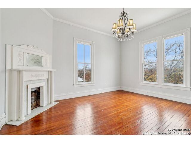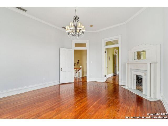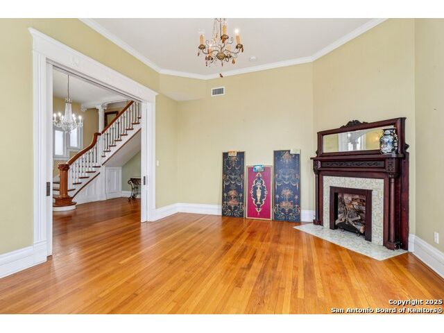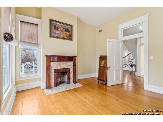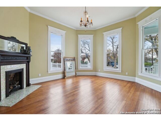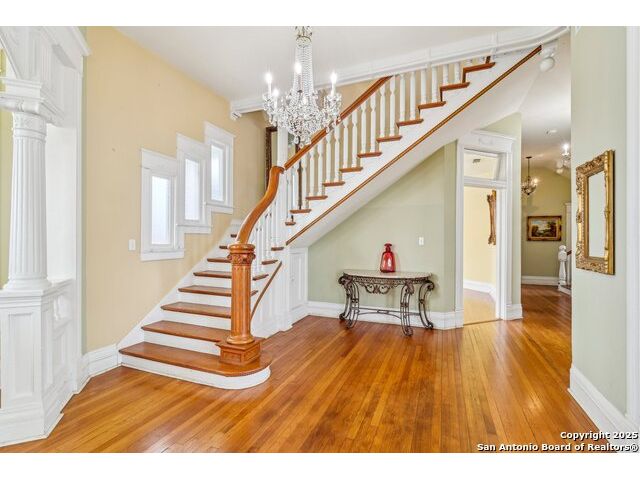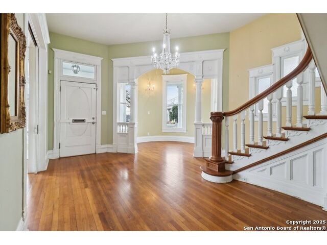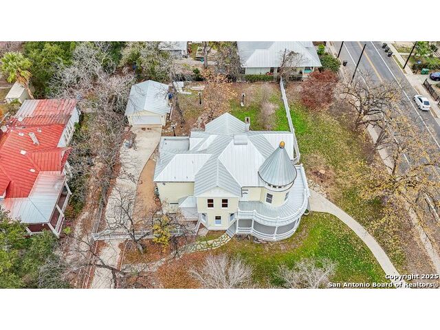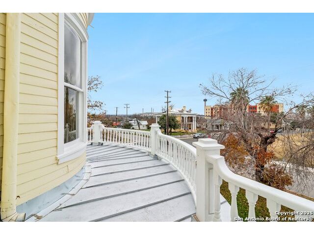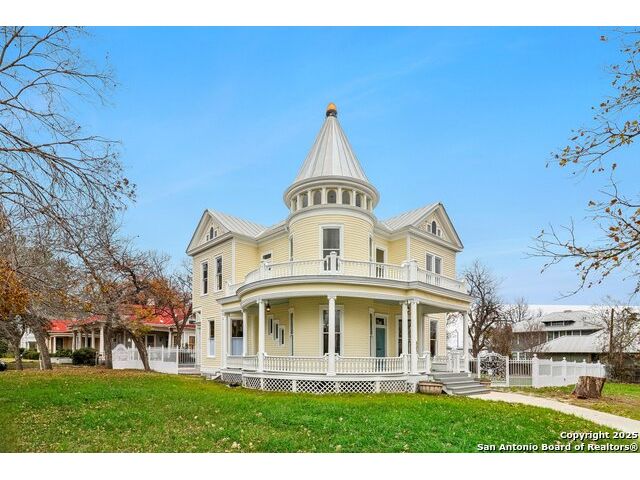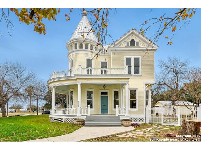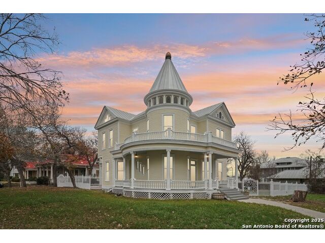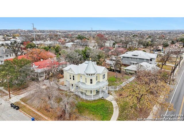 Step into the timeless elegance of 805 Nolan Street, a breathtaking Queen Anne Victorian home built in 1906 one of the most successful entrepreneurs of the late 1800s and early 1900s - Ed Friedrich. The "Friedrich House" provided luxury and comfort while allowing Mr. Friedrich a clear view and quick access to his factory a few blocks away. This meticulously restored property radiates historic charm while offering modern comforts, making it a true architectural masterpiece in one of the city's most sought-after neighborhoods. Upon arrival, a grand wraparound porch sets the tone for the home's character and charm. Step inside to an inviting foyer, where a beautifully crafted antique staircase invites you to ascend. 8-foot-tall vintage pocket doors make an grand entrance to the octagonal living room, where a fireplace, tall windows, and original, long-leaf, pine floors await all social gatherings. The homes exquisite elements instantly add elegance to every event. With minimal holiday decor, your real memories will replace any greeting card or classic Christmas movie scene. Throughout the home, tall doors are capped with original glass transoms and period matching cast iron molded hardware. Each room suspends its own unique chandelier with arrays of draped German crystals or French lamp shades. Even the long hallways and staircases exhibit candelabra chandeliers. 6-foot tall windows create unique juxtapositions of shadows and light on the curved walls and arched entries during the day as the sun's changing position dictates. Once the sun sets, the opulent lighting cascading from tall windows, causes traffic to slow and even stop in awe. The 1st floor also features a versatile flex space for a bedroom, office, or library. The dining area flows seamlessly into the grand kitchen, creating an ideal space for entertaining with a view of the city skyline as a back drop to the park. The artistically and masterfully hand-crafted banisters in the grand and servant stairways lead you aloft to five generously sized bedrooms and two full baths, perfect for family and guests. Step out onto the wide wraparound balcony where breathtaking views of downtown high rises, Hays Street Bridge, Alamodome, and Dignowity Park remind you why you love this city. Every detail, from crown molding to the intricate woodwork of the 175 banister spindles, reflects the care and admiration provided to this property over the past century. Situated in the vibrant Dignowity Hill neighborhood, 805 Nolan St. is perfectly positioned across the street from Dignowity Park, offering green space, picnic amenities, dog park, playground, basketball, and community events. The perpetual unobstructed view of downtown over the park palms and tree tops provides enjoyment of amazing sunsets and downtown fireworks. The Pearl, Alamodome, Hemisfair Park, and the highly anticipated Project MARVEL are minutes away, placing you in the heart of fine dining, entertainment, and cultural attractions. All this, minus long drives or hassles with parking. With its combination of historic charm, modern updates, and unbeatable location, 805 Nolan St. offers a rare opportunity to own a piece of the city's rich history with endless future possibilities. Whether you're looking for an amazing residence for your child's first memories, a lucrative investment, a multi-generational home, or just a perfection vacation spot, this stunning and unique property is a must see!