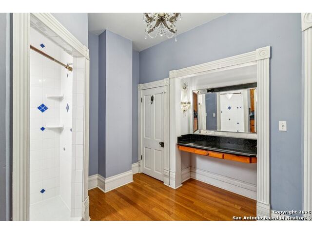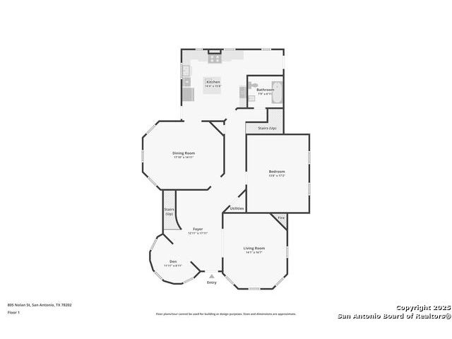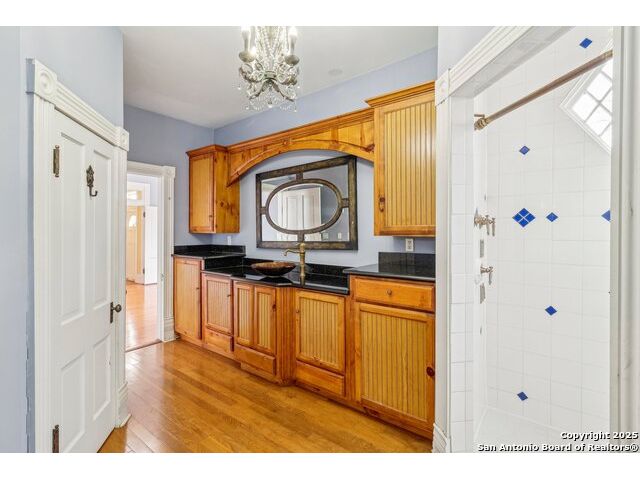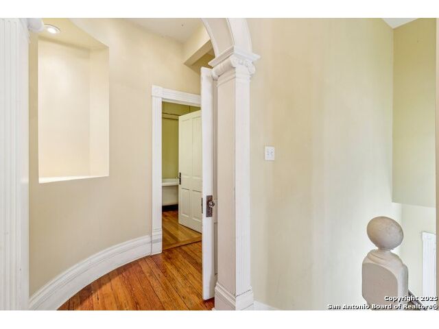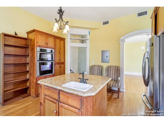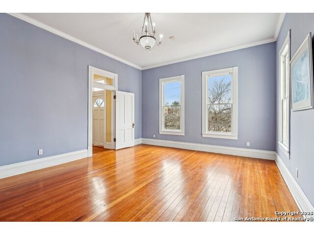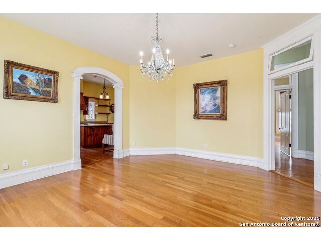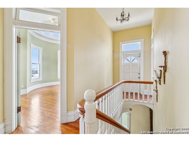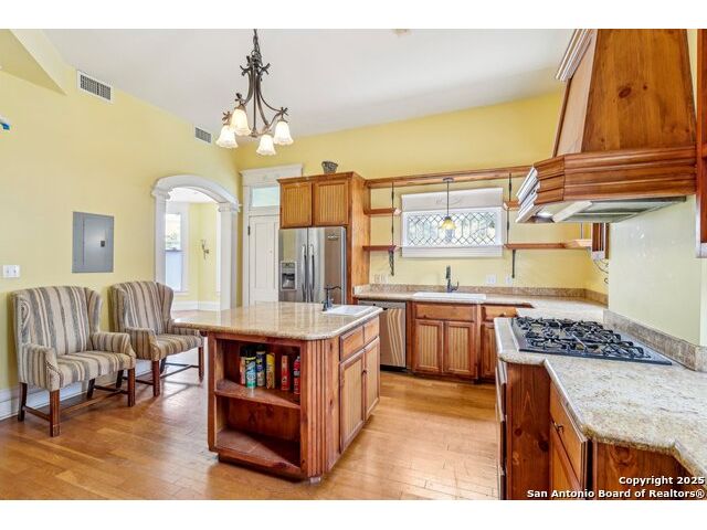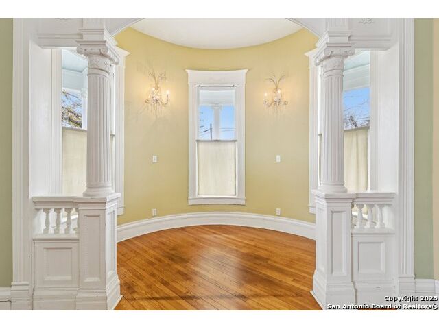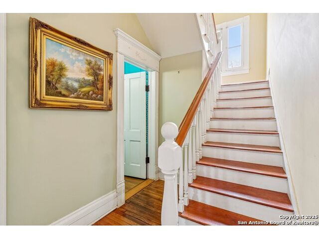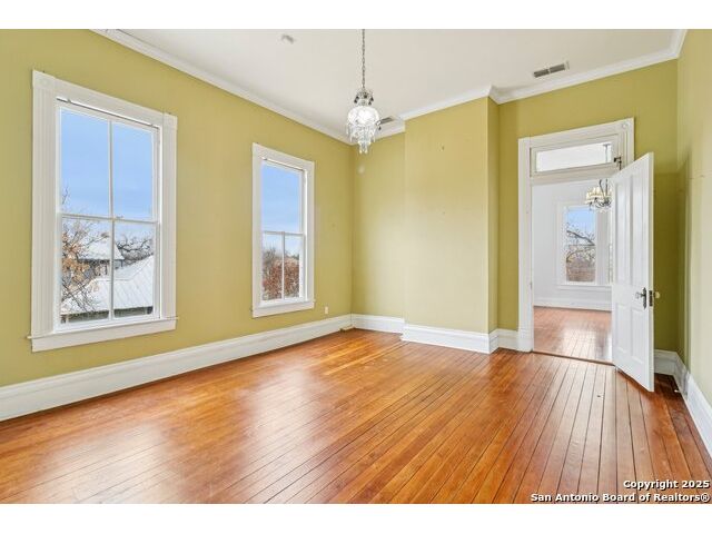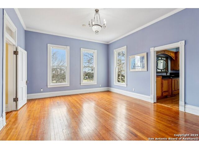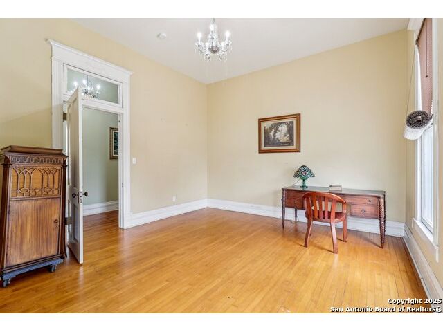 Step into the timeless elegance of 805 Nolan Street, a breathtaking Queen Anne Victorian home built in 1906 one of the most successful entrepreneurs of the late 1800s and early 1900s - Ed Friedrich. The "Friedrich House" provided luxury and comfort while allowing Mr. Friedrich a clear view and quick access to his factory a few blocks away. This meticulously restored property radiates historic charm while offering modern comforts, making it a true architectural masterpiece in one of the city's most sought-after neighborhoods. Upon arrival, a grand wraparound porch sets the tone for the home's character and charm. Step inside to an inviting foyer, where a beautifully crafted antique staircase invites you to ascend. 8-foot-tall vintage pocket doors make an grand entrance to the octagonal living room, where a fireplace, tall windows, and original, long-leaf, pine floors await all social gatherings. The homes exquisite elements instantly add elegance to every event. With minimal holiday decor, your real memories will replace any greeting card or classic Christmas movie scene. Throughout the home, tall doors are capped with original glass transoms and period matching cast iron molded hardware. Each room suspends its own unique chandelier with arrays of draped German crystals or French lamp shades. Even the long hallways and staircases exhibit candelabra chandeliers. 6-foot tall windows create unique juxtapositions of shadows and light on the curved walls and arched entries during the day as the sun's changing position dictates. Once the sun sets, the opulent lighting cascading from tall windows, causes traffic to slow and even stop in awe. The 1st floor also features a versatile flex space for a bedroom, office, or library. The dining area flows seamlessly into the grand kitchen, creating an ideal space for entertaining with a view of the city skyline as a back drop to the park. The artistically and masterfully hand-crafted banisters in the grand and servant stairways lead you aloft to five generously sized bedrooms and two full baths, perfect for family and guests. Step out onto the wide wraparound balcony where breathtaking views of downtown high rises, Hays Street Bridge, Alamodome, and Dignowity Park remind you why you love this city. Every detail, from crown molding to the intricate woodwork of the 175 banister spindles, reflects the care and admiration provided to this property over the past century. Situated in the vibrant Dignowity Hill neighborhood, 805 Nolan St. is perfectly positioned across the street from Dignowity Park, offering green space, picnic amenities, dog park, playground, basketball, and community events. The perpetual unobstructed view of downtown over the park palms and tree tops provides enjoyment of amazing sunsets and downtown fireworks. The Pearl, Alamodome, Hemisfair Park, and the highly anticipated Project MARVEL are minutes away, placing you in the heart of fine dining, entertainment, and cultural attractions. All this, minus long drives or hassles with parking. With its combination of historic charm, modern updates, and unbeatable location, 805 Nolan St. offers a rare opportunity to own a piece of the city's rich history with endless future possibilities. Whether you're looking for an amazing residence for your child's first memories, a lucrative investment, a multi-generational home, or just a perfection vacation spot, this stunning and unique property is a must see!