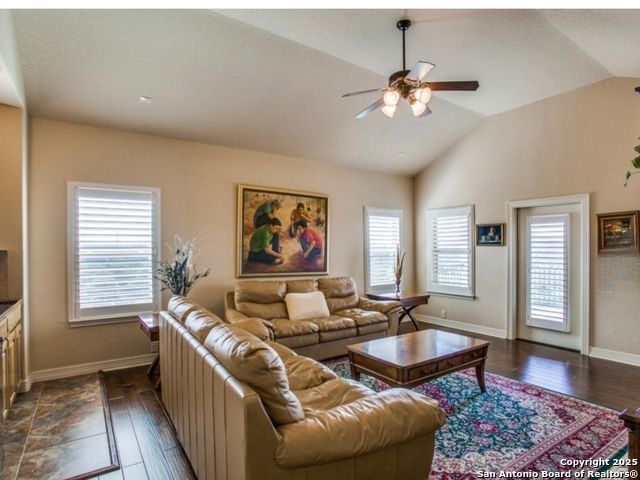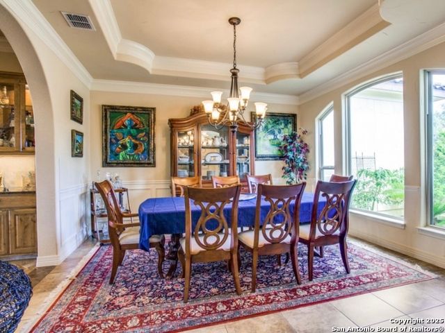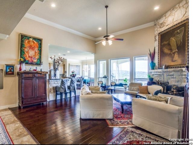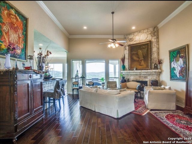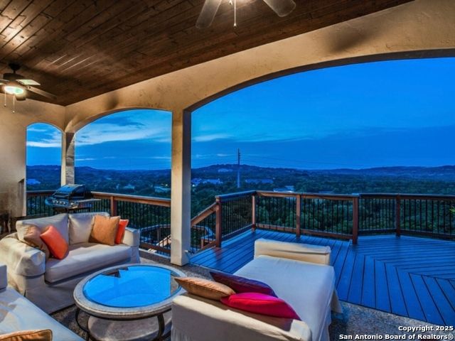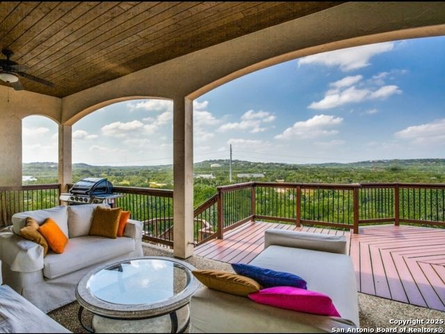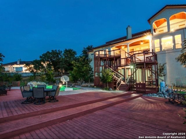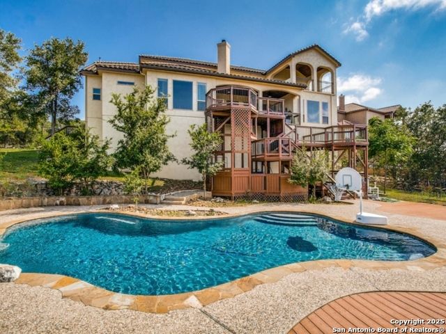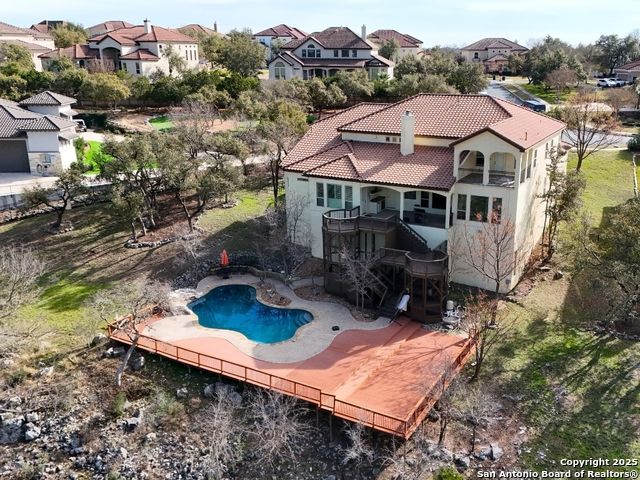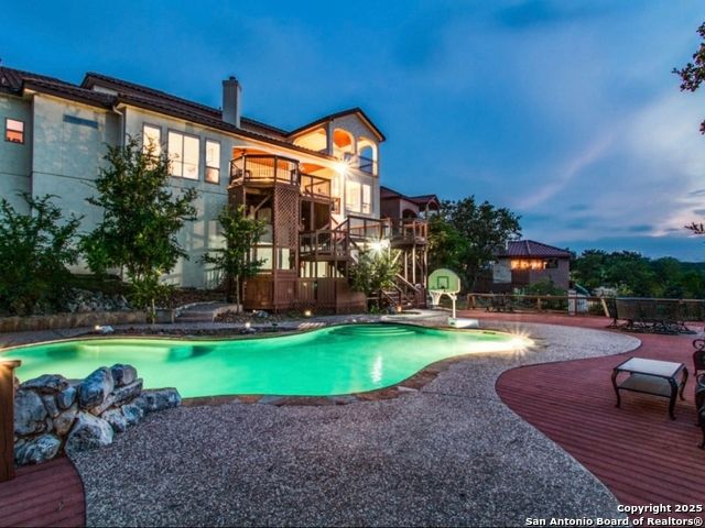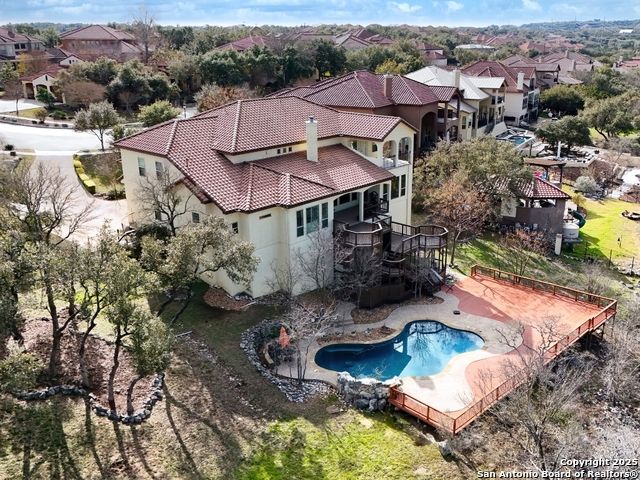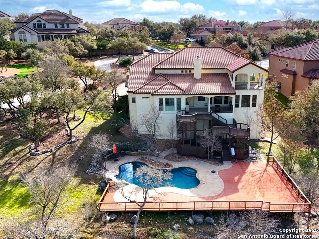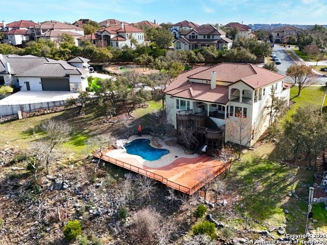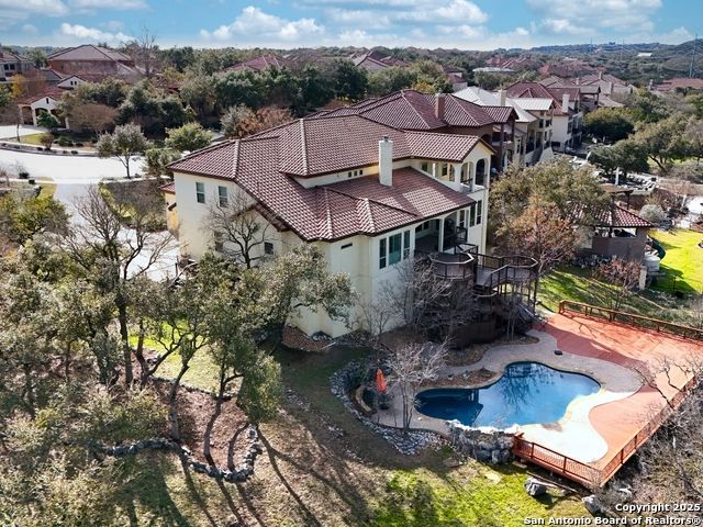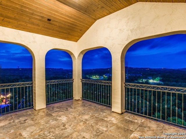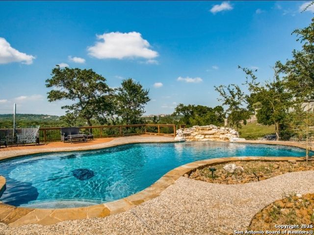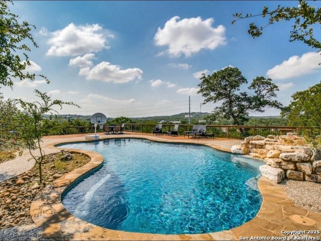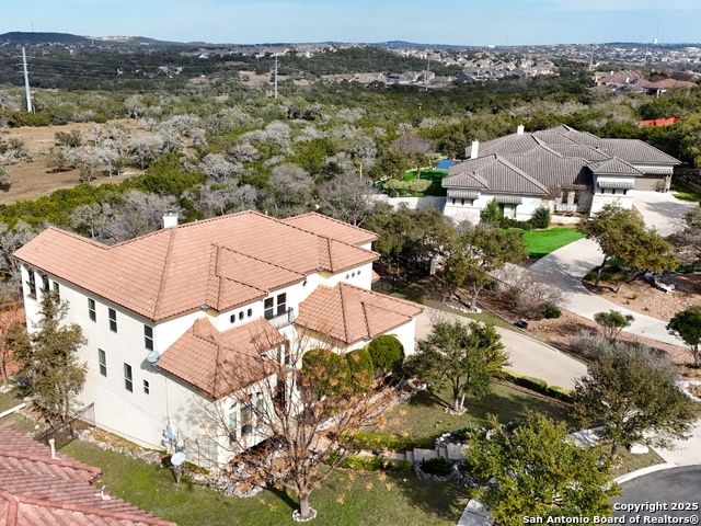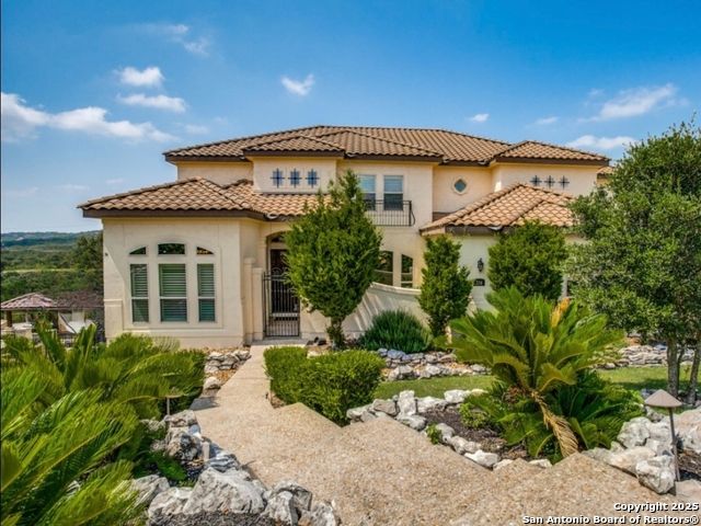Welcome to this stunning Mediterranean-style residence, perfectly situated within the prestigious guard-gated community of Canyon Springs. Step inside and you'll be captivated by the sweeping views of the Texas Hill Country-a fitting backdrop for a home that effortlessly blends elegance, functionality, and privacy. This meticulously designed interior caters to both everyday living and grand entertaining. This gourmet kitchen-anchored by a spacious island, custom cabinets, walk-in pantry, and gas cooking-truly serves as the heart of the home, uniting friends and family in a space designed for exceptional entertaining and culinary creativity. Retreat to the master suite and discover an oasis of relaxation boasting breathtaking vistas, a spa-like bath with a lavish stand-alone tub, walk-in shower, and his-and-her closets. Generously sized secondary bedrooms offer comfortable accommodations for family and guests alike. For those seeking fun and relaxation in equal measure, the game room stands ready, featuring a wet bar and direct access to a covered patio where you can soak in the most magnificent sunsets imaginable. When the temperature rises, cool off in the entertainer's pool, enhanced by the soothing sounds of a cascading waterfall. Whether hosting gatherings under the evening sky or simply enjoying a peaceful escape, this home provides endless opportunities to create cherished memories that will last a lifetime. Don't miss your chance to experience the pinnacle of living in Canyon Springs.