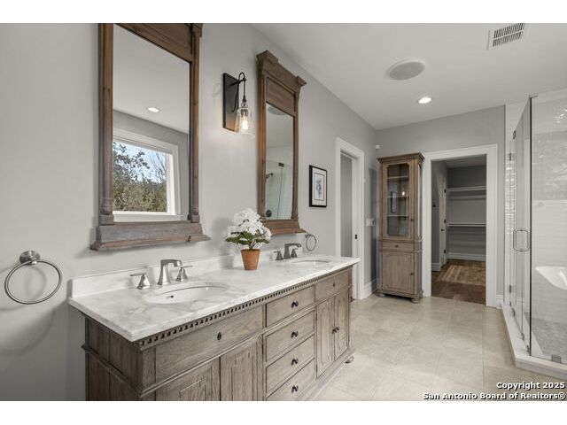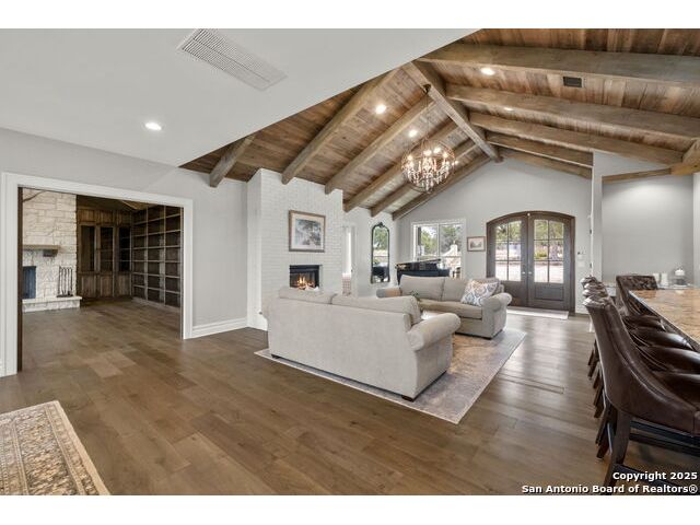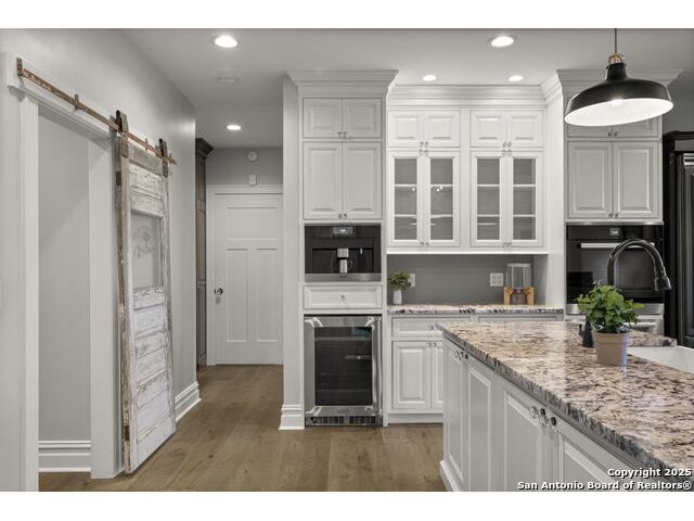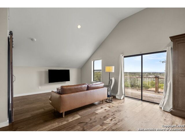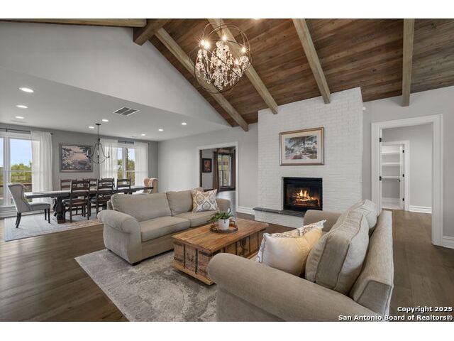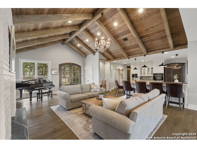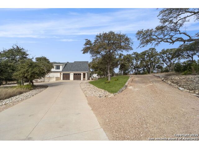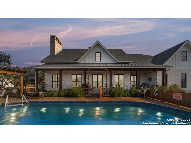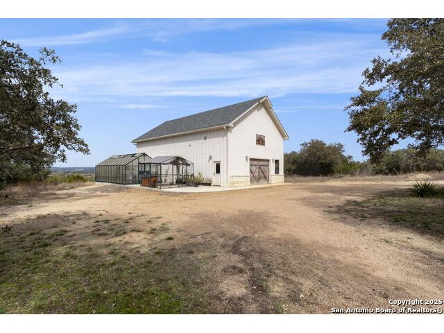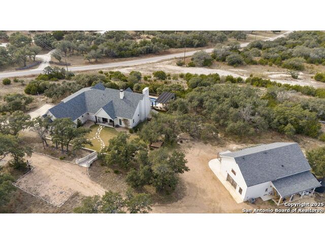Welcome to this extraordinary 5.41-acre property, located just one mile from the charming town of Blanco, TX, nestled in a serene and exclusive gated community of Cielo Springs. With stunning Hill Country views, this property offers the perfect blend of luxury, privacy, and convenience. The main residence is an impressive 4,538 sq ft, two-story home featuring spacious living areas, an abundance of natural light, and high-end finishes throughout. The home boasts a grand library, perfect for reading or working from home, and a top-of-the-line kitchen outfitted with Miele & Viking appliances that will delight any chef. The spacious primary suite offers a luxurious retreat, with a spa-like bathroom featuring heated tiled floors for added comfort. With four bedrooms, three and a half bathrooms, a walk-in gun vault, wood & gas fireplaces, and a stunning pool with a large deck and pergola, this home is designed for both relaxation and entertainment. For those who appreciate versatility and extra space, this property also includes a 30x50 barn, with a 1,065 sq ft heated apartment on the second story, perfect for guests. The main floor of the barn houses a heated 636 sq ft workshop, complete with a half bathroom for convenience. The property is thoughtfully designed for outdoor living with a fenced-in orchard, raised garden beds, and a greenhouse, perfect for the gardening enthusiast or those looking to live off the land. The property also includes a 20kw Generac generator, ensuring peace of mind during any power outages. This beautiful estate offers the ideal blend of luxury living and country charm, all within a short distance from Blanco's vibrant town center. Don't miss out on this one-of-a-kind Hill Country gem!