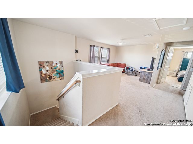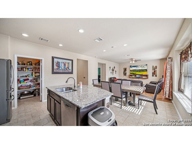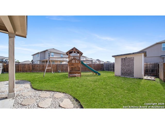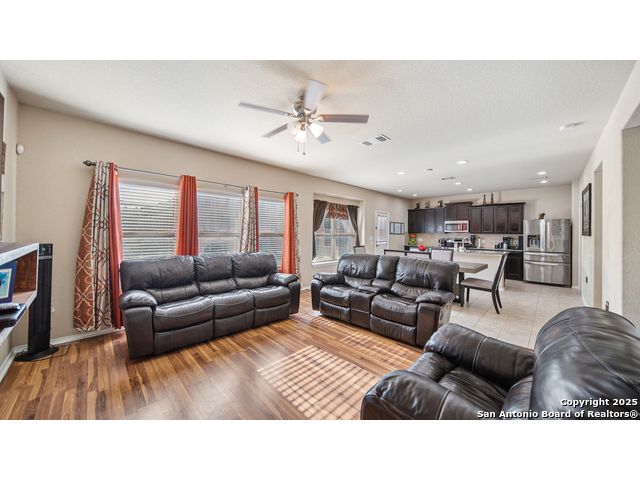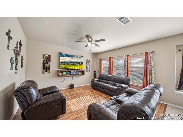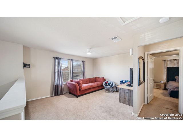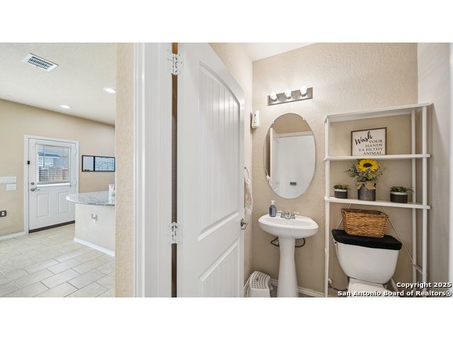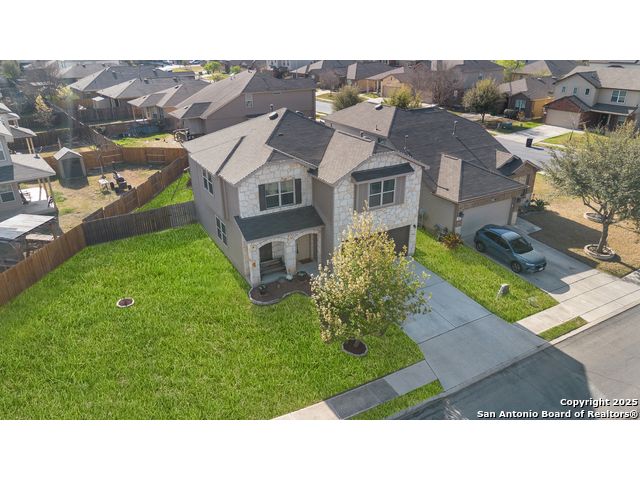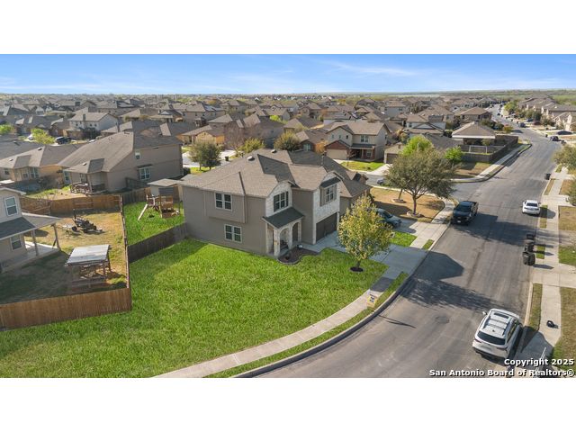 I'm excited to present this mint-condition, two-story gem with a plethora of upgrades. As you enter this beautiful 3-bedroom, 2.5-bathroom home with an office and loft, you'll be greeted by a stunning foyer that leads to an open floor plan, perfect for hosting guests. The granite countertops, 36" cabinets, and tile flooring throughout the first floor add to the home's appeal. The home has ceramic tile in all wet areas and the impressive wood laminate in the large family room offer both elegance and durability for your family's enjoyment.The island kitchen is a chef's dream with a convenient and ideal center island having granite countertops, custom cabinet lighting, with an adequate walk-in pantry. The owner's retreat provides a serene escape with its generous size including an attached area that can be used as a secondary upstairs office or sitting lounge. The primary bathroom offers a separate tub and shower and a spacious walk-in closet. The home boast one of the neighborhood's largest back and side yards ideal for entertaining offering plenty of street parking for visitors. The home's location near a recreation area with a pool and the Mission Del Lago golf course offers ample opportunities for fun, leisure and relaxation. Conveniently located to all the shops and businesses of Brooks City Base and just minutes away from downtown San Antonio. Come tour this beautiful home in Mission Del Lago today!
