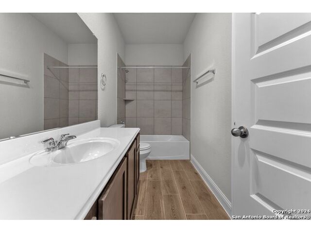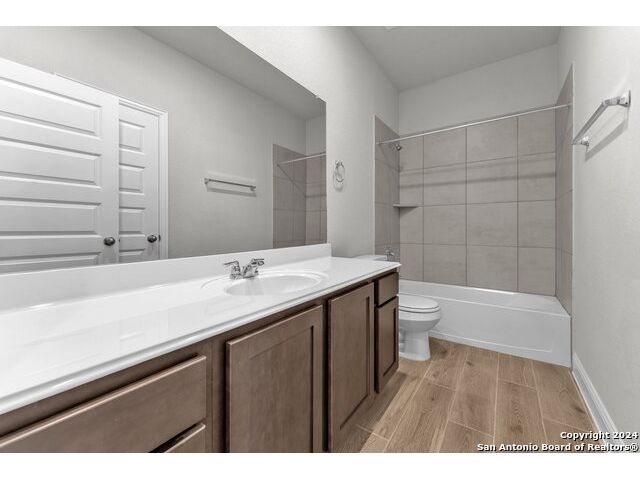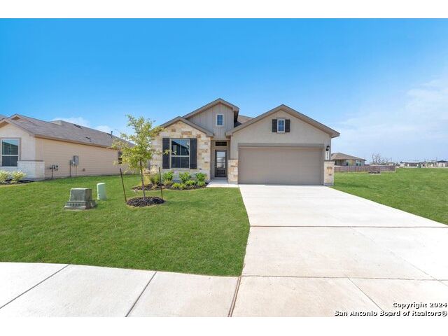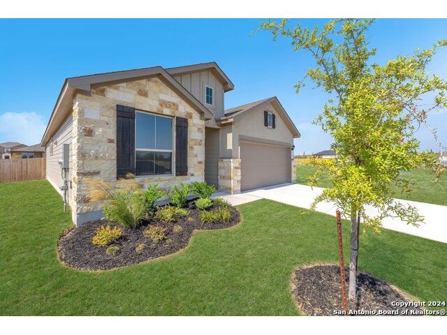 Seeking luxury at an affordable price? Discover the Catarina plan, offering nearly 1,800 Sq.Ft. of open living space designed for modern lifestyles. This exquisite home features a seamless flow among the kitchen, dining, and living areas, ideal for both entertaining and everyday living. With three bedrooms, two baths, a study, and a conveniently located utility room, this layout meets all your needs. High-end woodlay tile flooring throughout the main areas adds a touch of luxury, complemented by the kitchen's white cabinets, granite countertops, and stainless steel appliances. The bathrooms feature elegant cultured marble countertops. Experience the lifestyle Morgan Meadows has to offer, with its wealth of amenities including a pool, playground, sport court, amenity center, and walking trails. Perfectly situated just off the 1604 loop, enjoy easy access to San Antonio's prime attractions like Sea World and Canyon State Natural Area, and proximity to major employers such as Lackland Air Force Base. Zoned for the acclaimed Northside ISD, this community offers a variety of lots and floor plans for those preferring to custom-build. Photos are model rendering. This home is waiting to be yours!