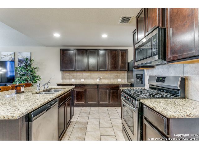 **ASSUMABLE VA LOAN 2.9 Interest Rate** Fabulous 5-bedroom home situated in the serene Rhine Valley community. Conveniently located near Randolph AFB and just minutes from Loop 1604, I-10 and plenty of shopping/dining at The Forum. The main level boasts an open layout, perfect for entertaining with ceramic tile throughout the main living areas. The island kitchen sits in the heart of the home featuring stainless steel appliances, granite countertops and abundant cabinetry. Upstairs includes a huge additional living space/loft area - perfect for a game or media room as well as 4 additional bedrooms and a full bath. Outside, enjoy a covered patio area with a full privacy fence and ample room to create your own outdoor oasis.