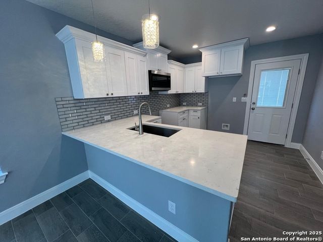 $3,000 BUYER INCENTIVE! MOVE-IN-READY! STEP INSIDE TO DISCOVER THIS BEAUTIFULLY RENOVATED MODERN OPEN FLOOR PLAN HOME WHICH FEATURES CUSTOM UPGRADES DESIGNED FOR BOTH FUNCTIONALITY AND STYLE. ENJOY COOKING AND HOSTING WITH YOUR BEAUTIFUL KITCHEN ISLAND WHICH OVERLOOKS THE LIVING ROOM AND DINING AREA CREATING THE ULTIMATE ENTERTAINING SPACE. HOME FEATURES GRANITE COUNTER TOPS, SHAKER STYLE CABINETS, GRANITE VANITY, PORCELAIN TILED BATH WALL. NEUTRAL PAINTING AND RECESSED LIGHTING THROUGHOUT THE HOME ENHANCE ITS BRIGHT AIRY FEEL. PARKING WILL NEVER BE A PROBLEM WITH 2 DRIVEWAYS PLUS A 3 CAR DETACHED GARAGE, PRIVACY FENCE AND CRUSHED GRANITE LANDSCAPING. DON'T MISS OUT ON THIS WONDERFUL HOME CENTRALLY LOCATED ALLOWING FOR EFFORTLESS COMMUTING AND EXPLORING ALL THAT SAN ANTONIO HAS TO OFFER. (No seller finance options. Measurements are approximate, Buyer to verify measurements. Buyer to verify Schools)