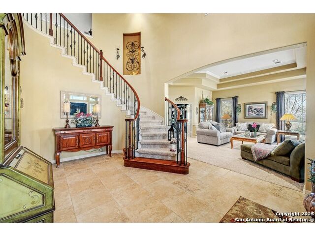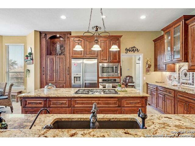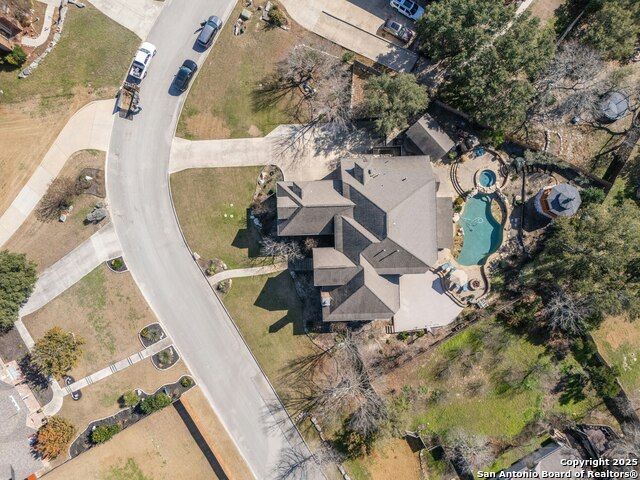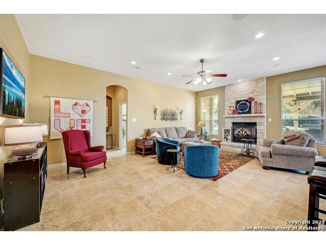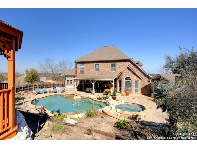 Hill Country Views, Gated Community & Resort-Style Living in Boerne ISD! Welcome to Woodland Pass, a hilltop retreat in the guard-gated Limestone Ranch community. Set on a spacious .57-acre lot, this 4-bedroom home combines luxury upgrades with everyday comfort and entertainment. Inside, you'll find a freshly painted, light-filled interior and a remodeled kitchen featuring gas cooking, double ovens, and generous counter space-perfect for both hosting and daily living. The backyard is designed as your private resort: a sparkling pool with waterfalls and water features, an outdoor kitchen, fire pit, gazebo, and even a basketball court. It's the ideal space for relaxing, entertaining, or staying active. Additional highlights include abundant storage throughout the home, updated finishes, and the peace of living in a secure, gated neighborhood with Boerne ISD schools nearby. This property offers the best of San Antonio living with Hill Country charm-luxury, space, and endless amenities. Schedule your private showing today to experience it for yourself!