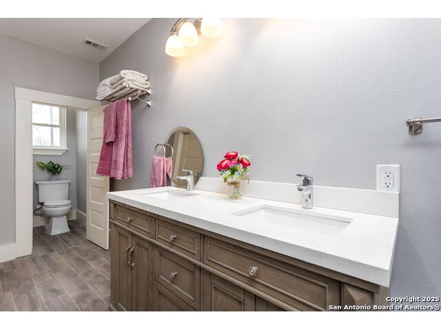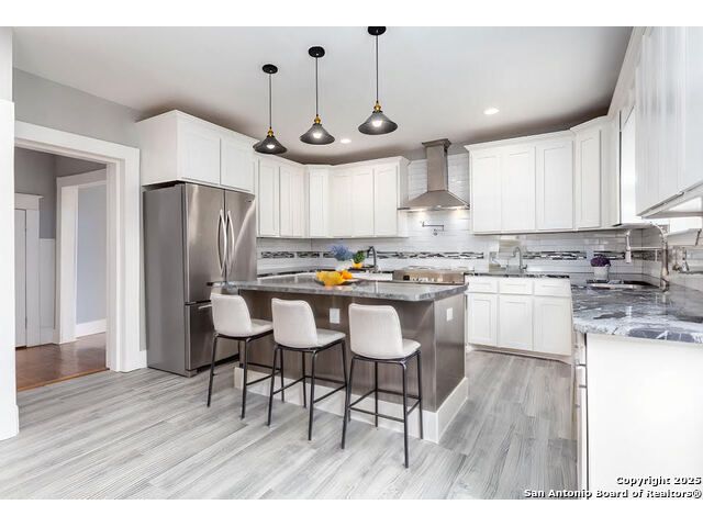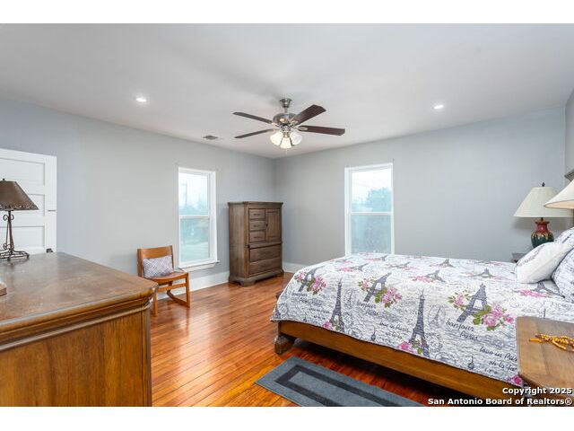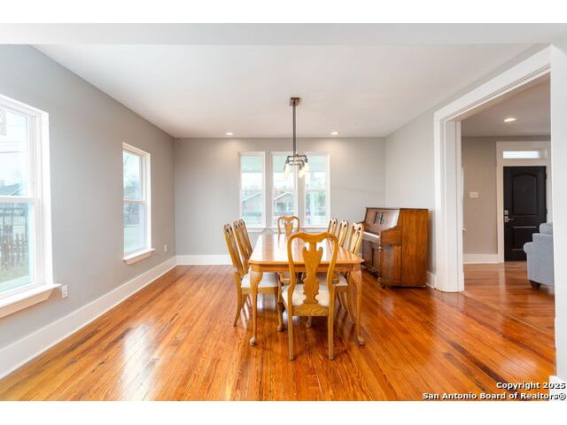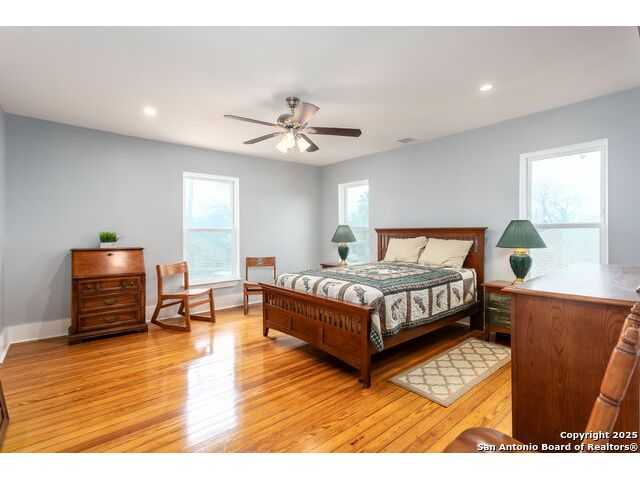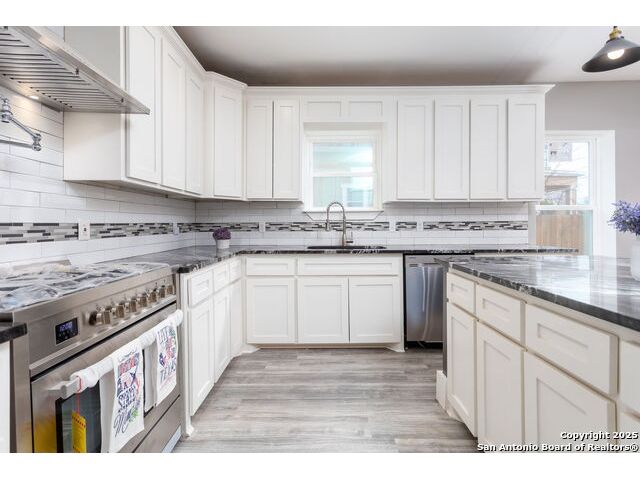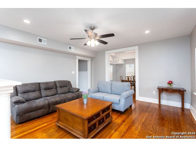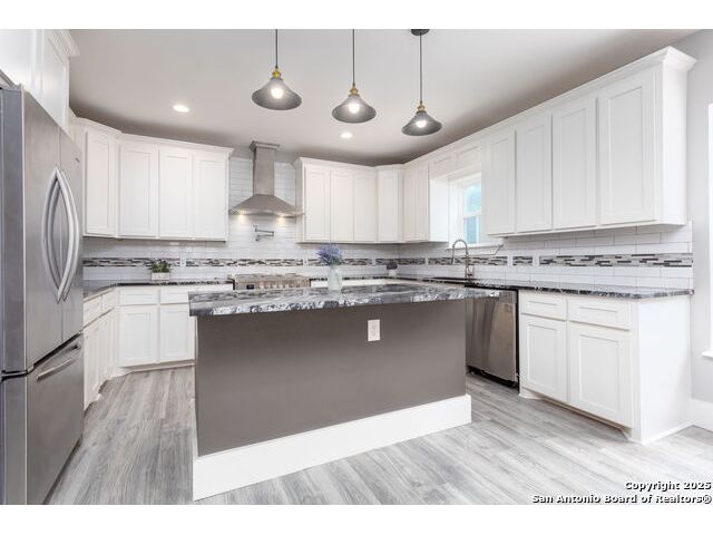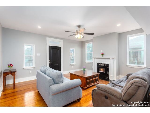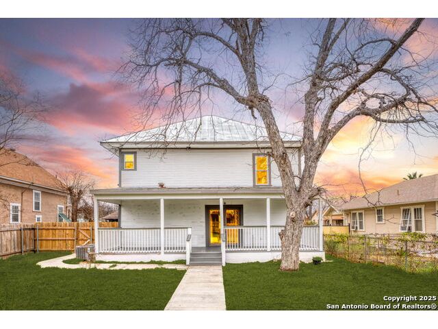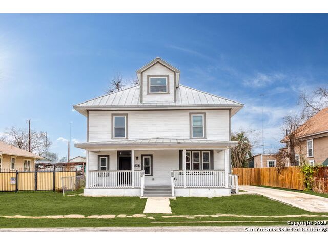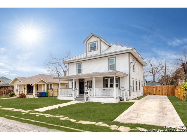 Step into a timeless masterpiece with this beautifully updated 3-story Victorian-style home, where classic charm meets modern elegance. This 4 spacious bedrooms, 3.5-bath gem features a fully updated kitchen is a chef's dream, featuring custom cabinetry, sleek granite countertops, and a striking glass mosaic and subway tile backsplash. Newer windows, a durable metal roof, and stunning hardwood floors throughout, with luxury vinyl in the kitchen. Natural light fills the home, with elegant pendant lighting in the dining area. The third floor offers a private en-suite bedroom or flexible game room. Enjoy a spacious backyard with a covered porch, deck, detached garage, and driveway pad provide convenient parking. Located in an up-and-coming neighborhood minutes from major highways, Downtown, King Williams, Lavaca and Blue Star...