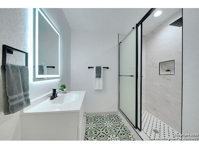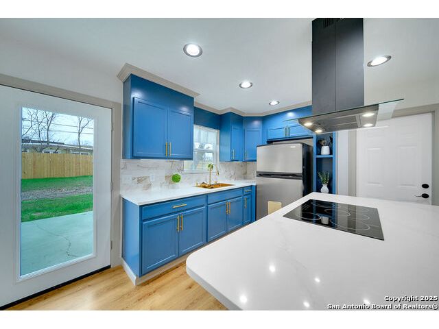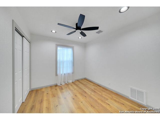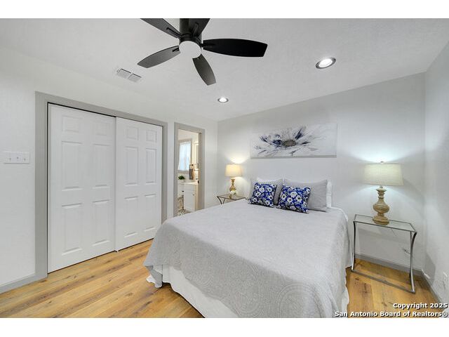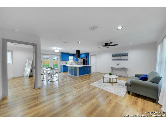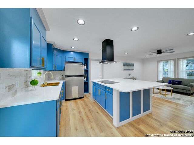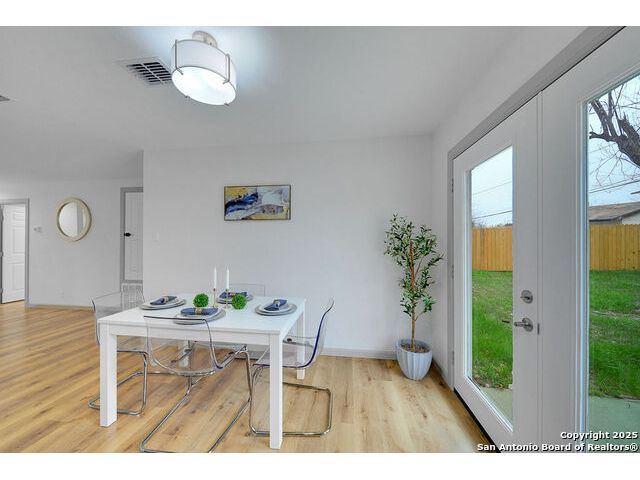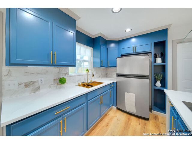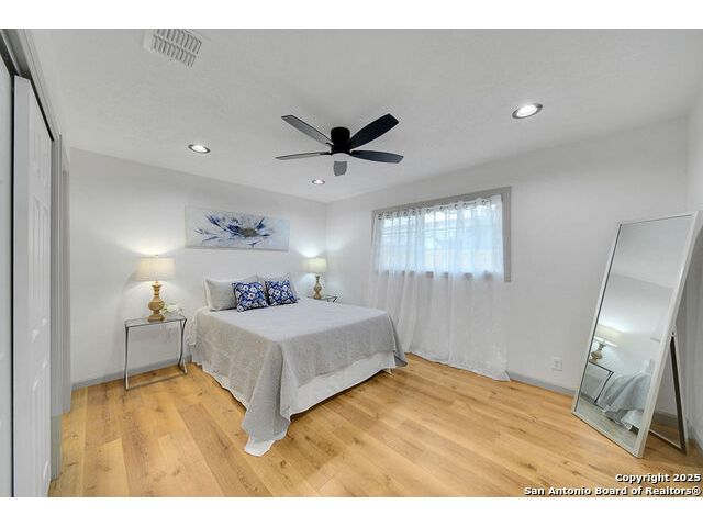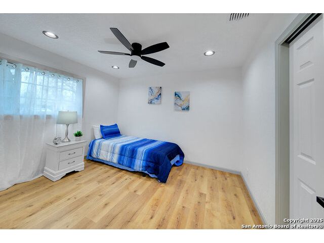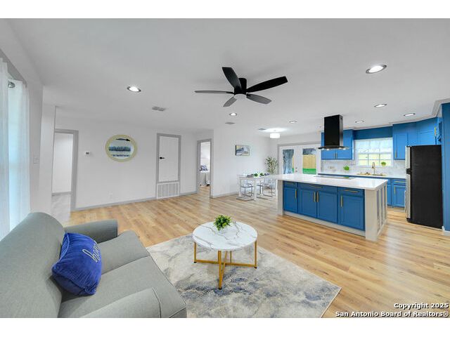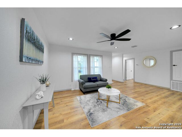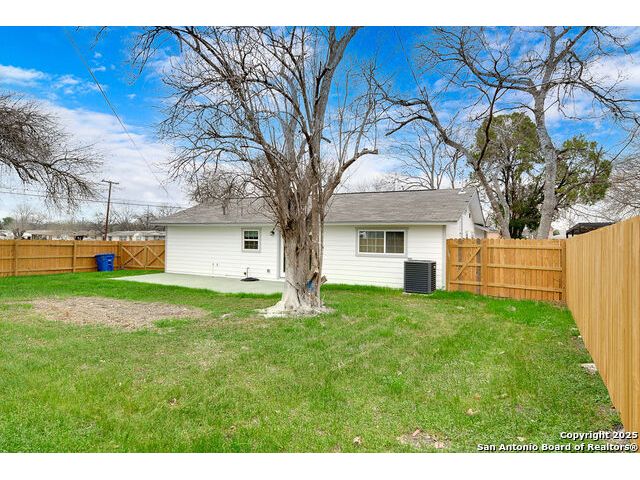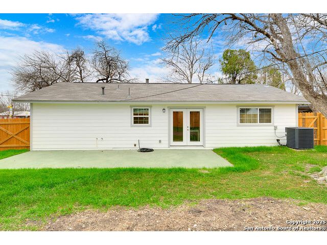 Situated on a desirable corner lot, this move-in-ready home offers 3 bedrooms, 2 full baths, and a 1-car garage, and spanning 1,165 square feet. With countless upgrades and modern finishes, it truly has all the bells and whistles. Recent improvements include a new HVAC system, new roof, updated electrical, new energy-efficient windows, new laminate flooring, and new insulation and drywall throughout. Both the interior and exterior have been freshly painted, while a new water heater, stylish fixtures, and energy-saving LED lighting complete the updates. The thoughtfully designed open-concept floor plan brings a modern touch, perfect for entertaining and everyday living. The stunning kitchen boasts quartz countertops, a tile backsplash, a large island breakfast bar, and plenty of storage space. The refrigerator is included for added convenience. Step outside to the private backyard, where you can enjoy BBQs or relax with family on the cozy patio. Vehicle access to the backyard as well. Located across the street from the elementary school, and middle and high schools nearby. Enjoy easy access to Loop 410, Highway 90, and Highway 151 for an easy commute. Don't miss out on this beautifully upgraded home!