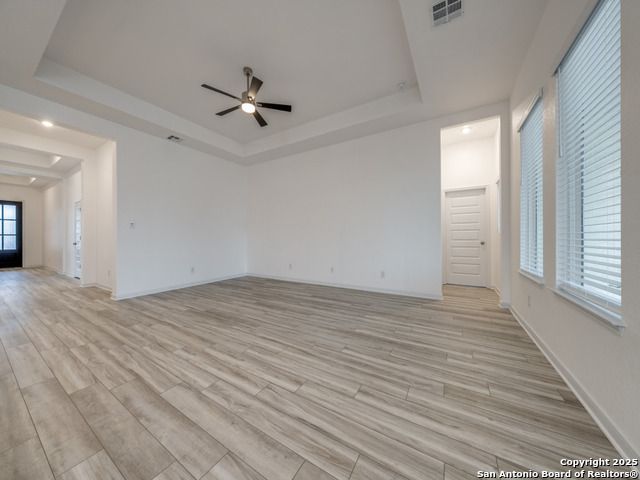 Beautiful curb appeal describes this absolutely stunning home featuring quality finishes & numerous upgrades throughout. The study w/glass French doors & a private guest bedroom suite flow off the 32-foot dramatic entry with dual-coffered ceilings.The chef's kitchen has upgraded cabinetry, gas cooking, oversized island, quartz countertops, fabulous pantry, and contemporary design backsplash. Luxury vinyl flooring is throughout the main living areas.The primary bedroom is attached to a spa-like bath with an oversized designer shower w/2 showering areas. Oversized corner lot w/ wrought iron fencing & nice landscaping. The covered patio is perfect for family gatherings.
