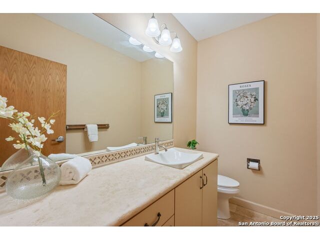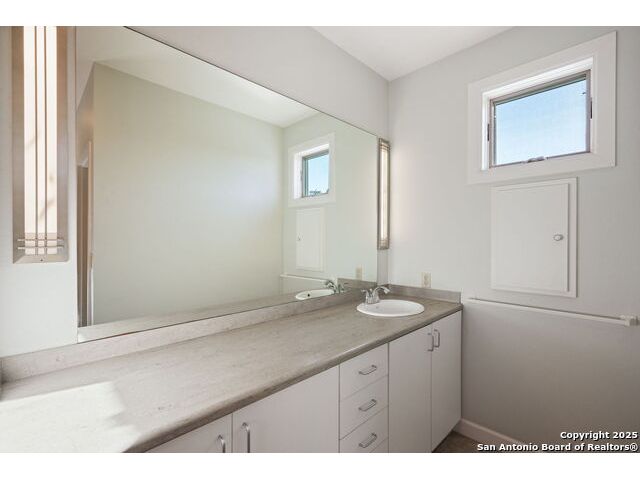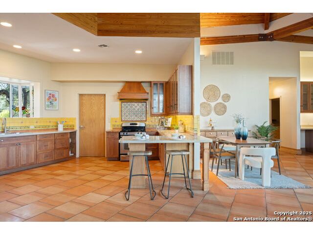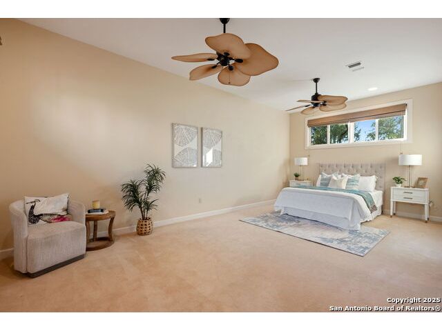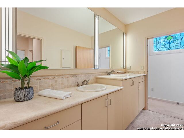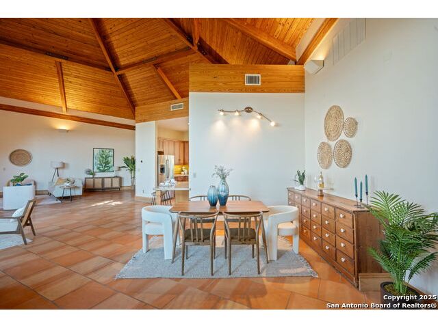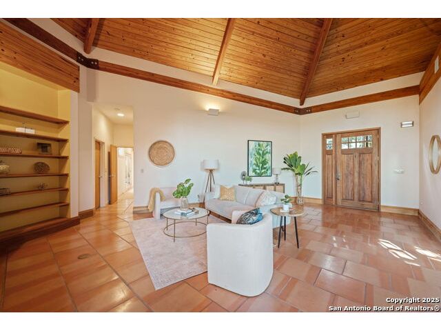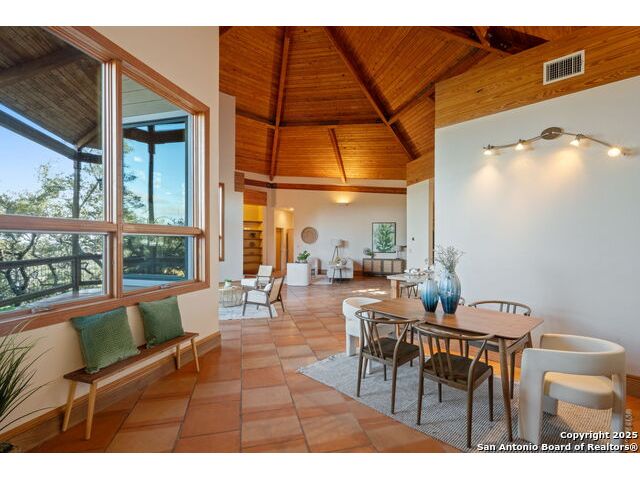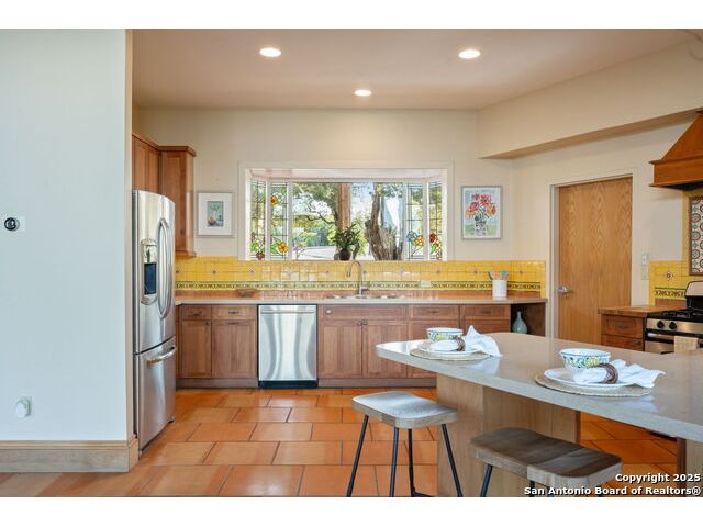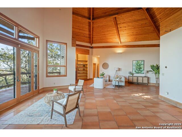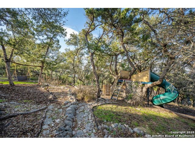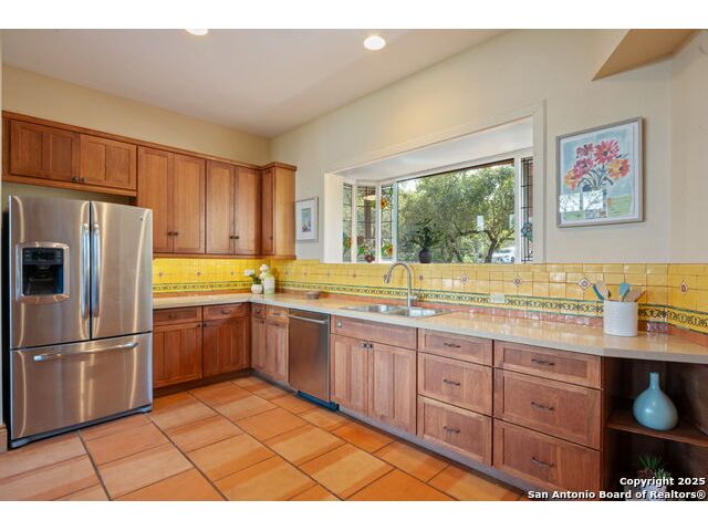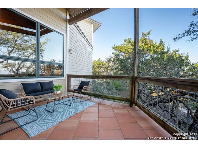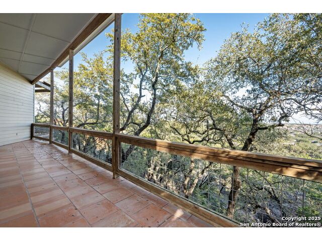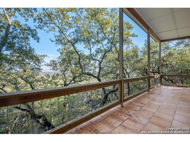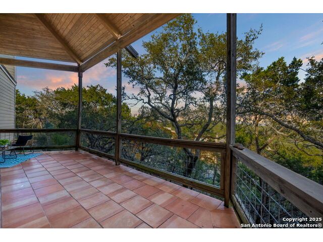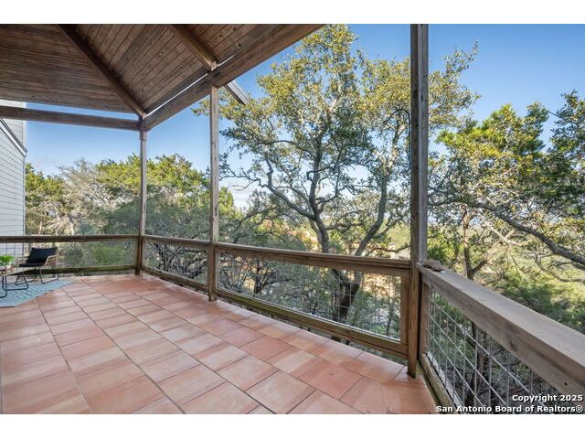 Welcome to your dream home! Nestled in the heart of San Antonio, Texas yet has the feel of living in the Hill Country. This stunning 4-bedroom, 2.5-bathroom abode is located at the end of a cul-de-sac with amazing views and significant privacy. It offers an open-concept living and dining space perfect for entertaining and family gatherings. The spacious living room boasts large windows, flooding the area with natural light and showcasing the beautiful saltillo tile flooring throughout much of the home. Modern kitchen featuring stainless steel appliances, ample storage space in large walk-in pantry and custom Thomasville cabinetry. The primary suite is a true retreat, complete with a dual walk-in closets and a luxurious en-suite bathroom equipped with dual vanities, a soaking tub, and a separate shower. Three additional bedrooms provide plenty of space for family, guests, or a home office. Cozy den for watching TV and a large art studio or bonus room could be used for additional living space, exercise room, playroom, or another bedroom. Watch the sunrise from the two spacious covered decks giving you the feel of living in a tree house and being one with nature! There is an additional deck/balcony upstairs providing amazing views. Three car attached garage is oversized and includes an work bench area and epoxy floors. These original owner sellers built this home with the highest quality materials and included extra electrical outlets and extra insulation. Situated in a friendly neighborhood with top-rated schools, and easy access to shopping and dining, this home truly has it all. Don't miss out on the opportunity to make this exquisite property your own! Schedule a showing today and start living the San Antonio dream.