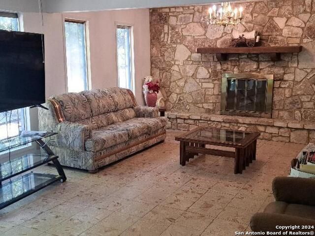 Original Owner. 2300 Sq ft. Ac/Heating furnace and unit including duck work replaced in 2016. Roof is approximately 9-10 years old. Water Heater replaced 2021. Three bedrooms, two bath home with Large primary bedroom is oversized 24x12 with Seating area and two closets. Primary bath provides walk in shower and double vanity. Home has two Living areas, two eating areas, large oversized laundry room and pantry. New carpet in primary bedroom. New laminate flooring in formal living room. VCT tile in additional bedrooms and Ceramic tile in bath areas. Fire place in family room. Back yard boast a stone firepit for family BBQ gatherings. and Privacy fence. Water fountain bird bath display. Refrigerators (2) conveys. Carport and storage shed. 2 MINUTES FROM PORTSA. Just minutes from Downtown San Antonio, Bus Routes, Close to SeaWorld...