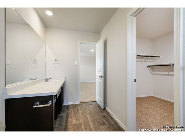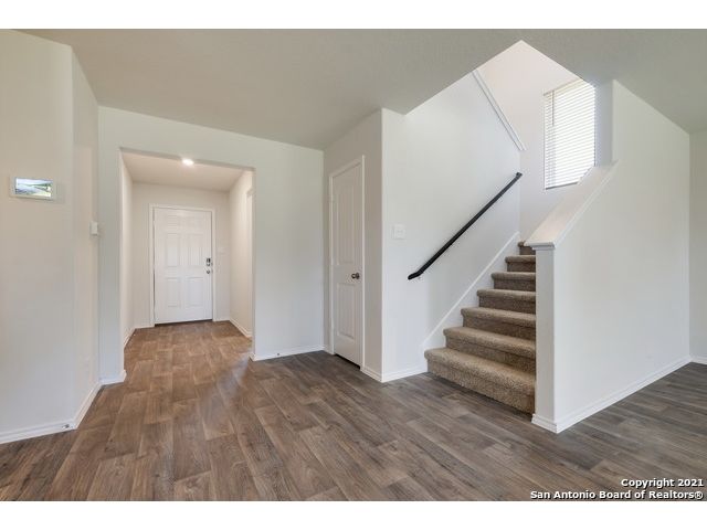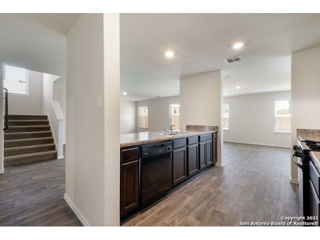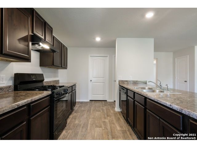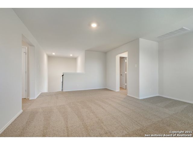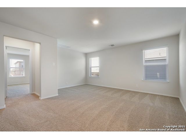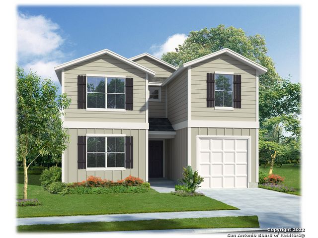 Welcome to The Wolters, a stunning two-story home featured in our Solana Ridge community in San Antonio, TX. This floor plan offers 3 classic front exteriors, a 1-car garage, and a full yard landscaping and irrigation package, ensuring your home looks its best every single day. Inside this 4 bedroom, 3 bathroom home, you'll find 2530 square feet of open-concept living. A inviting from porch and foyer leads to a blended living room, kitchen and dining area, perfect for entertaining and every day living. Your kitchen includes quartz counter tops, stainless steel appliances and shaker style cabinetry. The corner pantry is spacious and includes plenty of built-in shelving. A laundry room is also conveniently located off the kitchen and connect to the garage. With a secondary bedroom and full bath located off the front foyer, this home offers private space for out-of-town guests. Head up the wide staircase to find a versatile loft with storage space, the private main bedroom suite, two secluded secondary bedrooms with carpet flooring and walk-in closets and a third full bath. The private main bedroom is an oasis, featuring an attractive ensuite bathroom and oversized walk-in closet. Enjoy quality quartz vanity tops, a combined bath tub and shower and plenty of counter space. Additional features include sheet vinyl flooring in entry, living room, and all wet areas, quartz bathroom counter tops, and our HOME IS CONNECTED base package. Using one central hub that talks to all the devices in your home, you can control the lights, thermostat and locks, all from your cellular device.