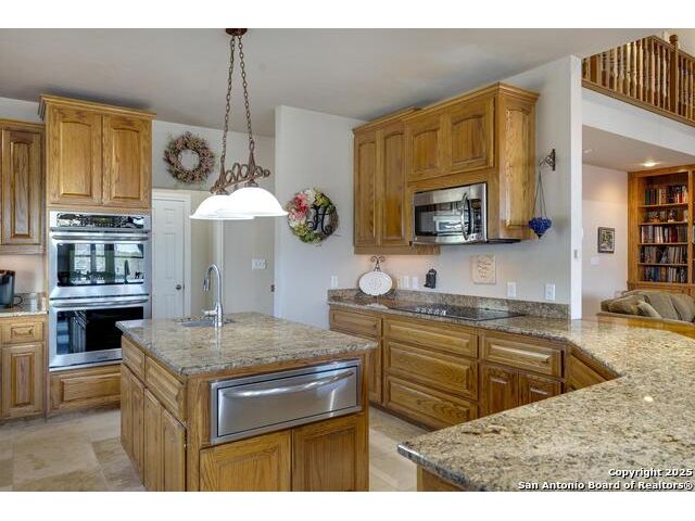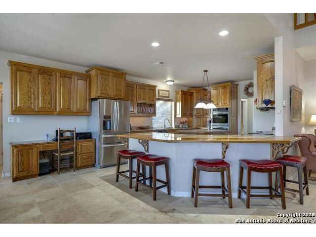 Welcome to 231 Stoney Brook Rd in Kerrville Tx. This property offers a beautiful 3233 sq ft custom-built home, large workshop with one bedroom apartment attached, all sitting on 9.82 acres of Texas Hill Country with amazing views. The home includes 3 generously sized bedrooms with the master suite downstairs, three full and one-half baths, and a large bonus room. The kitchen is designed for entertaining with granite countertops, custom cabinetry, a large island with second sink, built in appliances, full breakfast bar with an open floorplan design making this the perfect location for large family gatherings. Throughout the home you will find 18 inch travertine stone flooring in the common areas, along with custom cut railing and balusters along the stairway making this home the perfect illustration of hill country living. At the rear of the home, you will find a large, covered patio and deck, accessible from both the living room and master bedroom where you can watch the white-tailed deer, axis deer, and other wildlife that frequent the area, or simply take in the amazing views and seasonal color changes that seemingly never end. The workshop offers plenty of space and storage for any outdoor enthusiast, including walk in cooler, apartment area complete with bedroom, kitchenette bathroom and laundry. There is an abundance of mature trees on the property and just the right combination of cleared easy to access areas and wooded terrain. Located in Kerrville Tx, where you will lose yourself in the hills, while still having easy access to interstate 10 and all of the dinning, shopping and entertainment this area has to offer.
